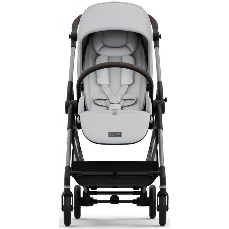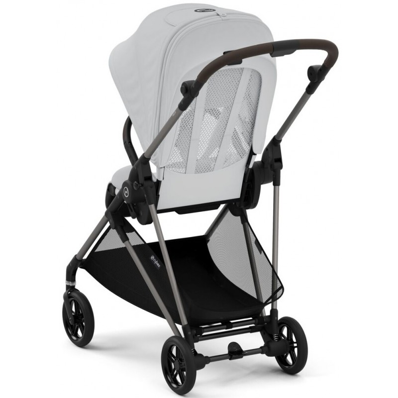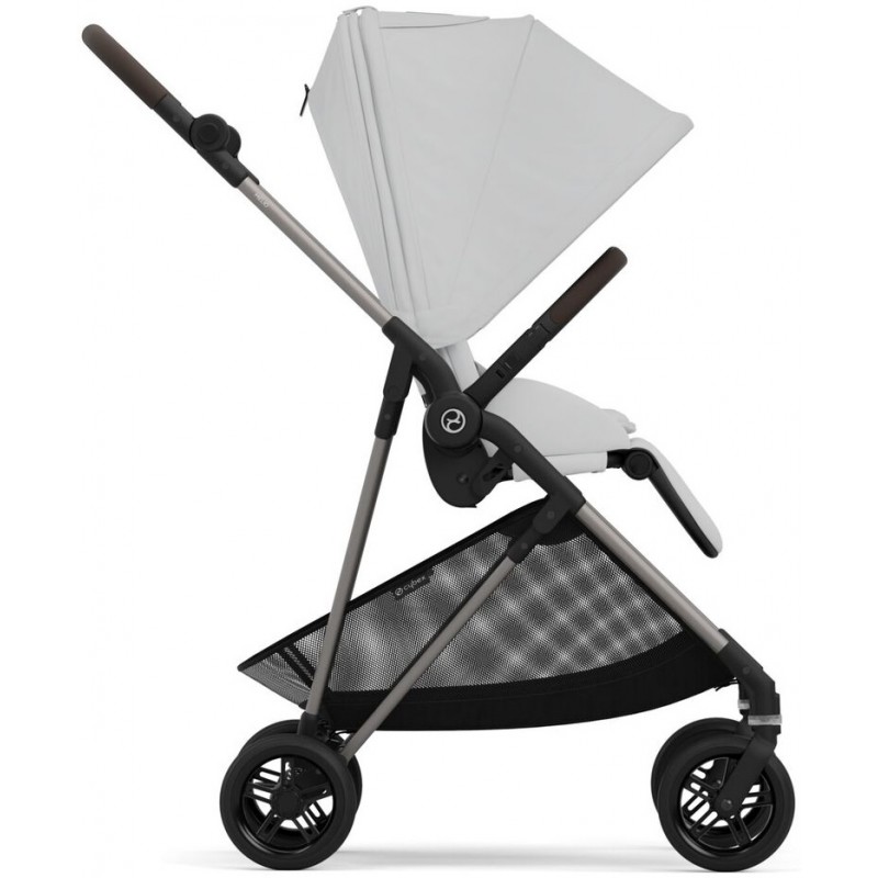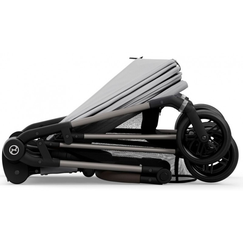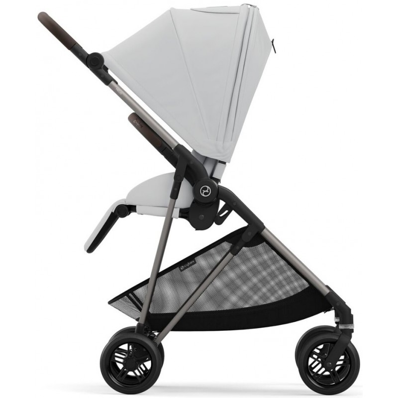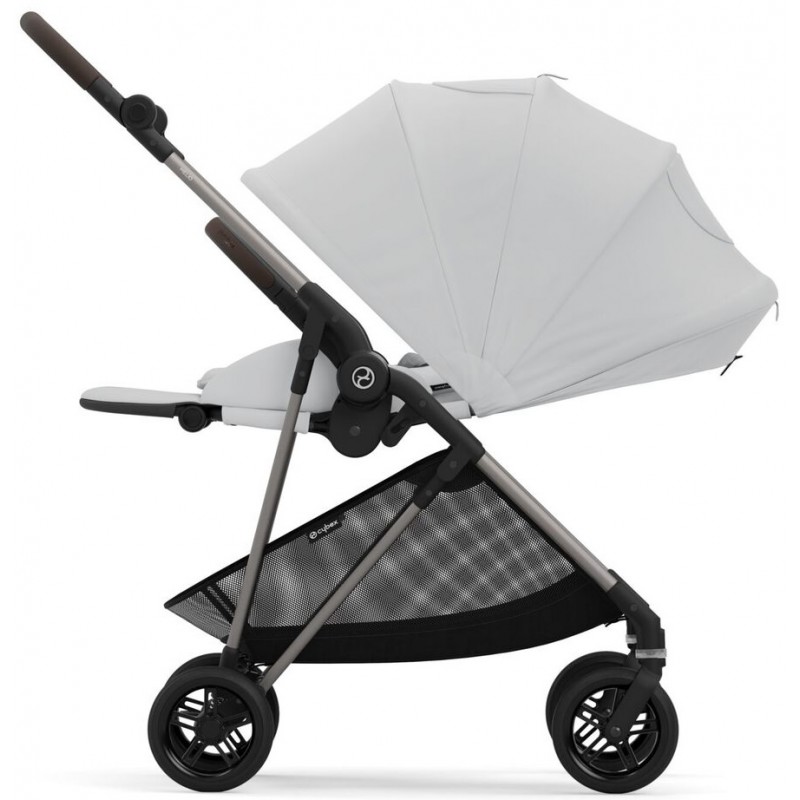 Амортизатори на колесах роблять підвіску коляски Cybex Melio м'якою і дозволяють плавно долати будь-які нерівності на дорогах. Шасі коляски, завдяки інноваційним розробкам, дуже легко і компактно складається, в складеному вигляді шасі може самостійно стояти у вертикальному положенні. Нижня корзина для покупок, яка входить в комплект коляски, містка і дозволить здійснювати покупки під час прогулянок.