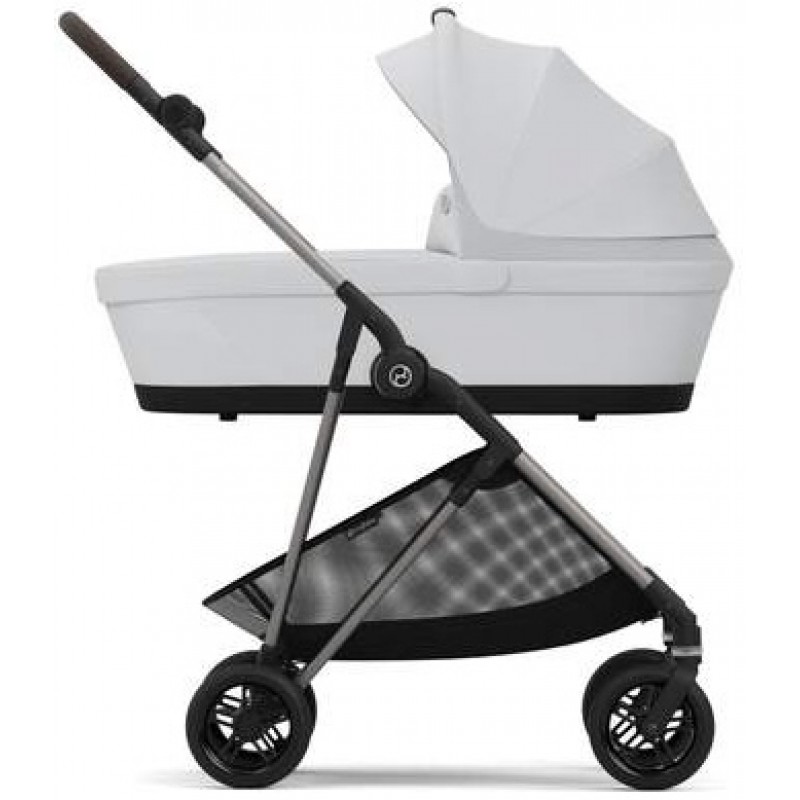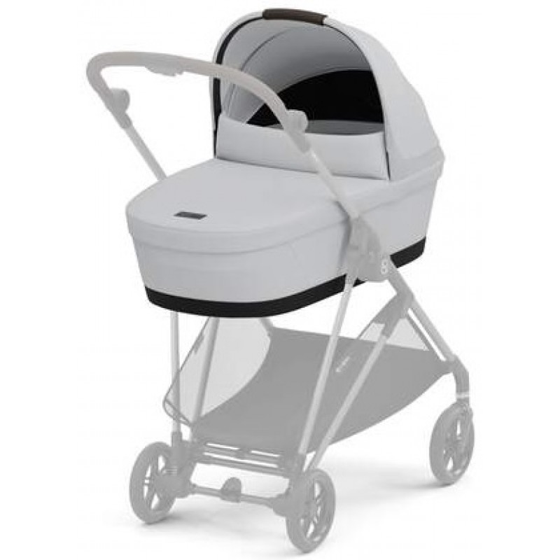 Люлька Cybex Melio має ручку для перенесення, а також вбудовану в капюшон москітну сітку для провітрювання. Всередині люльки м'який, досить високий матрацик, що забезпечує правильне положення дитини. Внутрішня оббивка коляски, знімна, і її можна прати. Люлька в складеному вигляді має компактні розміри і займає мінімум місяця під час зберігання. Капюшон має додатковий сонцезахисний піддашок з рівнем захисту UPF50+.