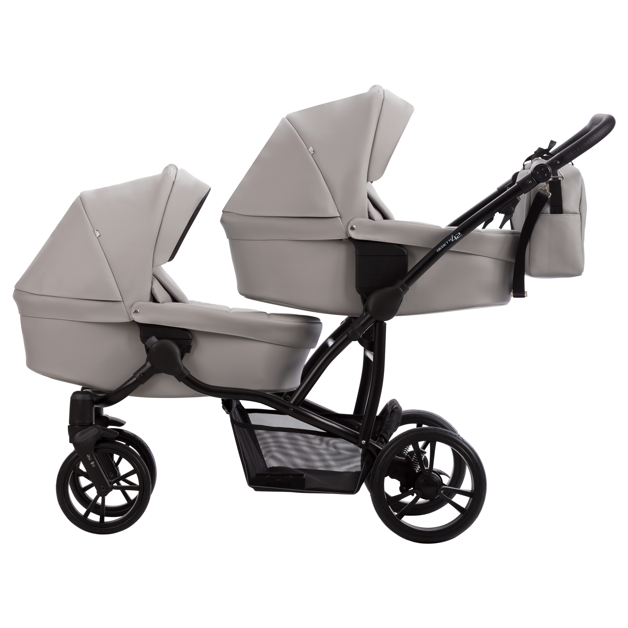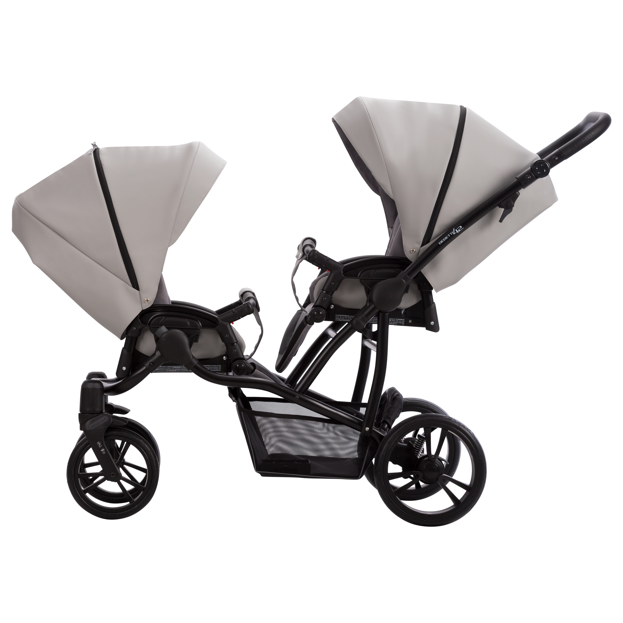 Польська коляска Bebetto 42 Premium PRO комплектується всіма модулями й аксесуарами, необхідними для комфортної прогулянки з двома дітьми: 2 колиски, 2 прогулянкових блоки, 2 дощовики, 2 москітні сітки. На раму за допомогою адаптерів можна встановити 2 автокрісла вікової групи 0+ від популярних європейських виробників. Коляска дозволяє красиво вирішити питання прогулянок з двійнятами або погодками.