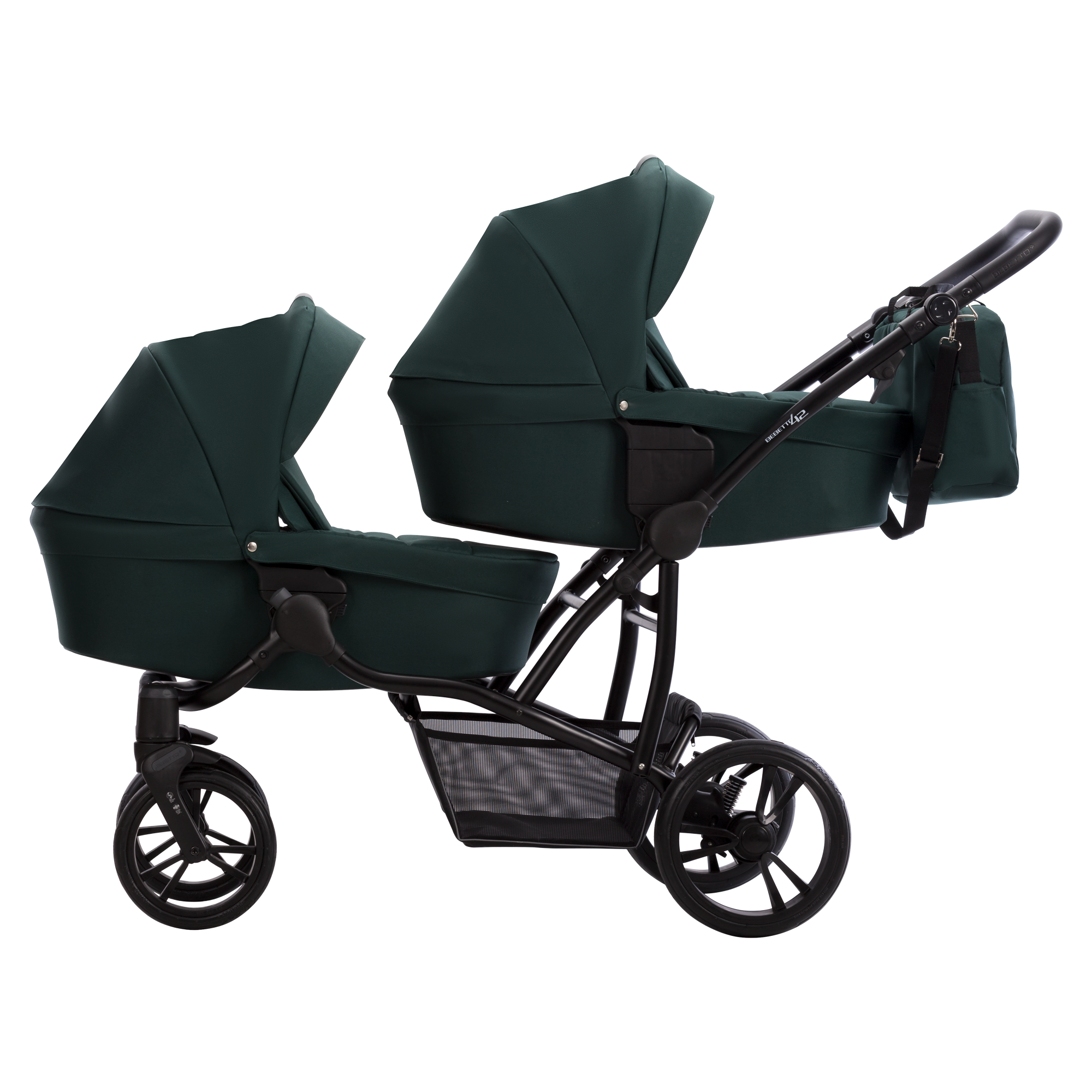 Практичний дитячий візок Bebetto B 42 для погодок та двійнят. Модель складається з двох колисок та двох прогулянкових блоків, які встановлюються на раму коляски.