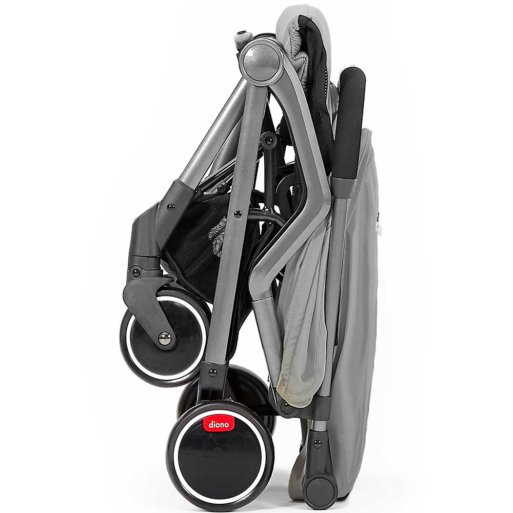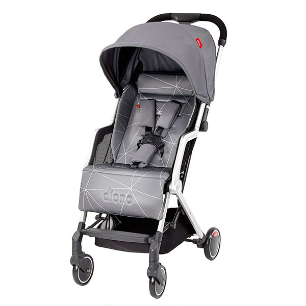 Diono Traverze - компактність у складеному вигляді, телескопічна ручка управління, колеса невеликого діаметру, глибоке сидіння, зручна підніжка і надійні п'ятиточкові ремені, що забезпечують батькам простоту експлуатації, а малюку – комфорт і безпека. Коляска Diono Traverze розкладається та складається однією рукою!