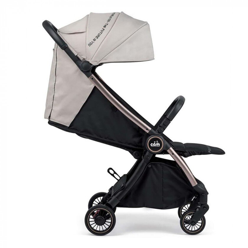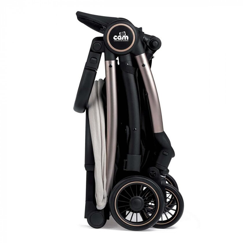 Коляска прогулянкова Cam Matic — легка і компактна сучасна коляска з плавним ходом і унікальними характеристиками. Легку вагу коляски забезпечує міцна рама з алюмінію, передні колеса обертаються навколо своєї осі, коляска суперстійкі в складеному положенні. Великий і об'ємний капюшон з сонцезахисним козирком повністю накриває малюка під час сну і захистить його в дощову, вітряну погоду і від яскравого сонця.