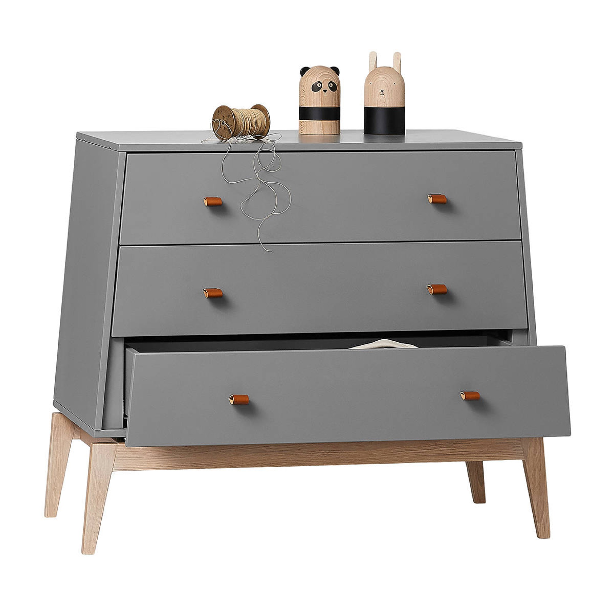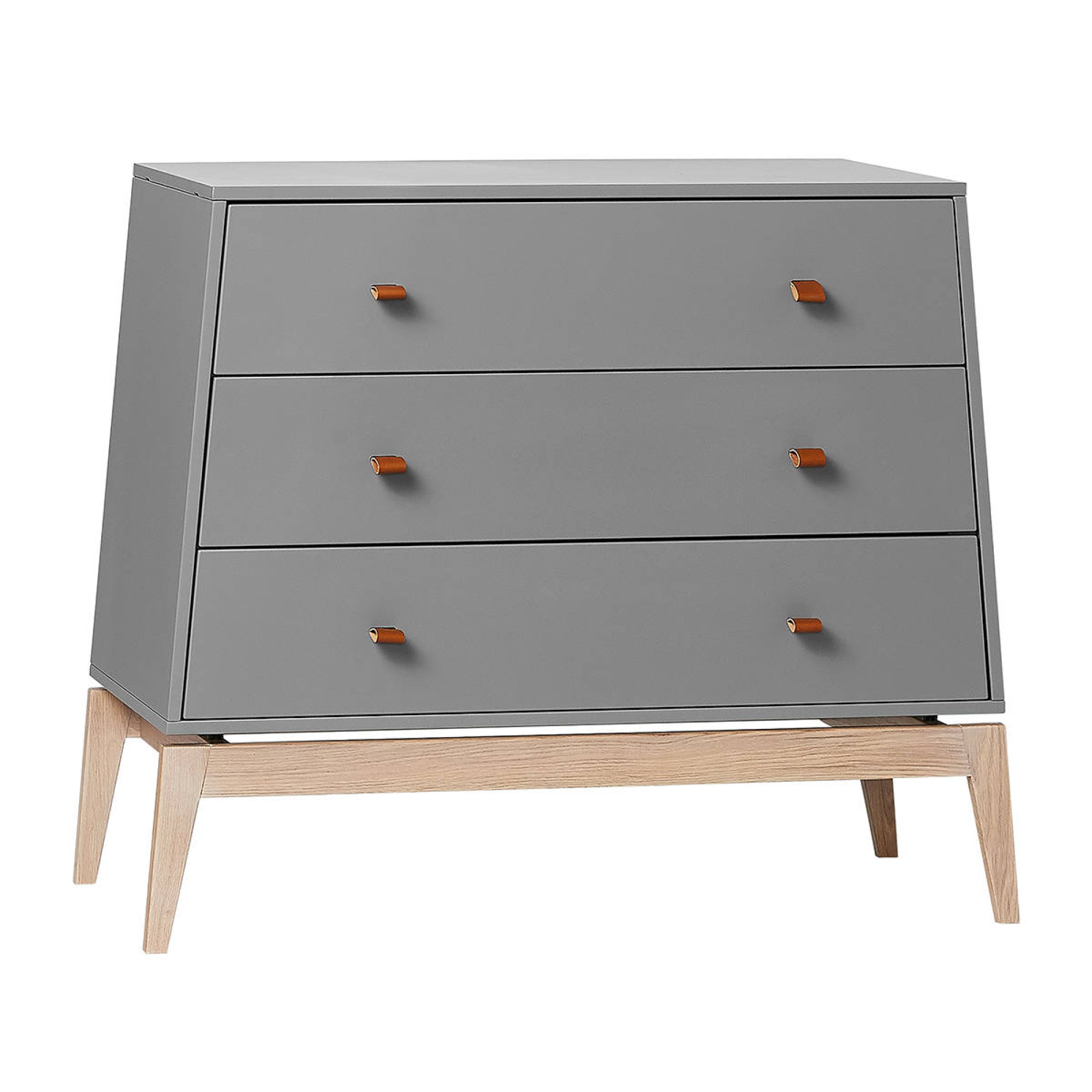 Для всієї серії Leander Luna характерні строгі лінії, завдяки яким конструкція комода виглядає легкою та елегантною. За допомогою сповивального столика Leander Luna або килимка Leander Matty ви можете використовувати комод для створення красивої та практичної сповивальної зони.