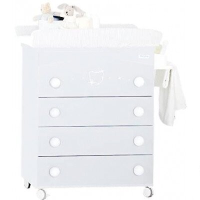 Комод з пеленатором і ванночкою Micuna від іспанського виробника. Вироблений з безпечних для малюка матеріалів, які не містять шкідливих смол і фенолів.