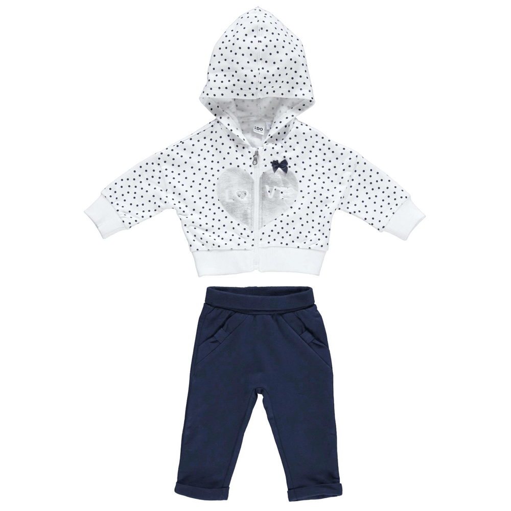 Біла кофтинка на блискавці оздоблена капюшоном та широкими манжетами-гумками. Застібається на блискавку. Прикрашена сріблястим принтом "серце" на грудях, маленьким бантиком.