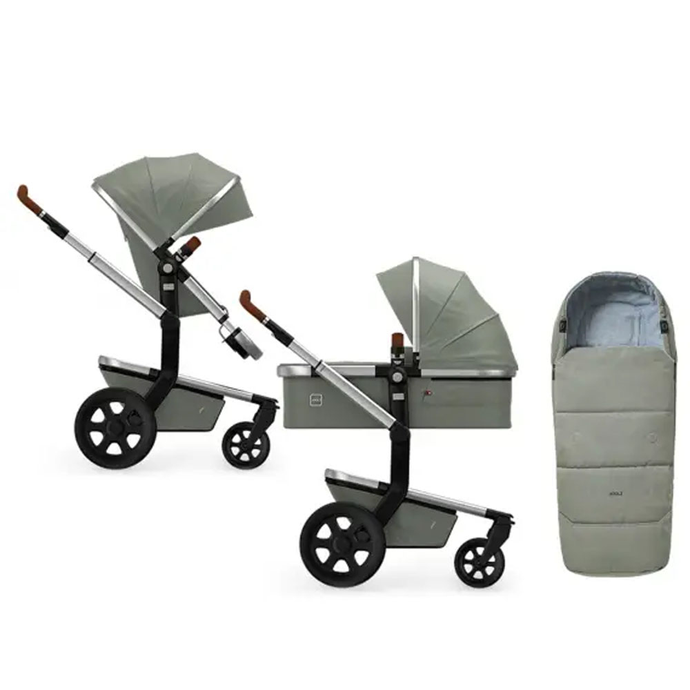 Комплект Joolz Day3 містить універсальну коляску Earth Elephant Grey та теплий спальний мішок Sage/Mindful Green.