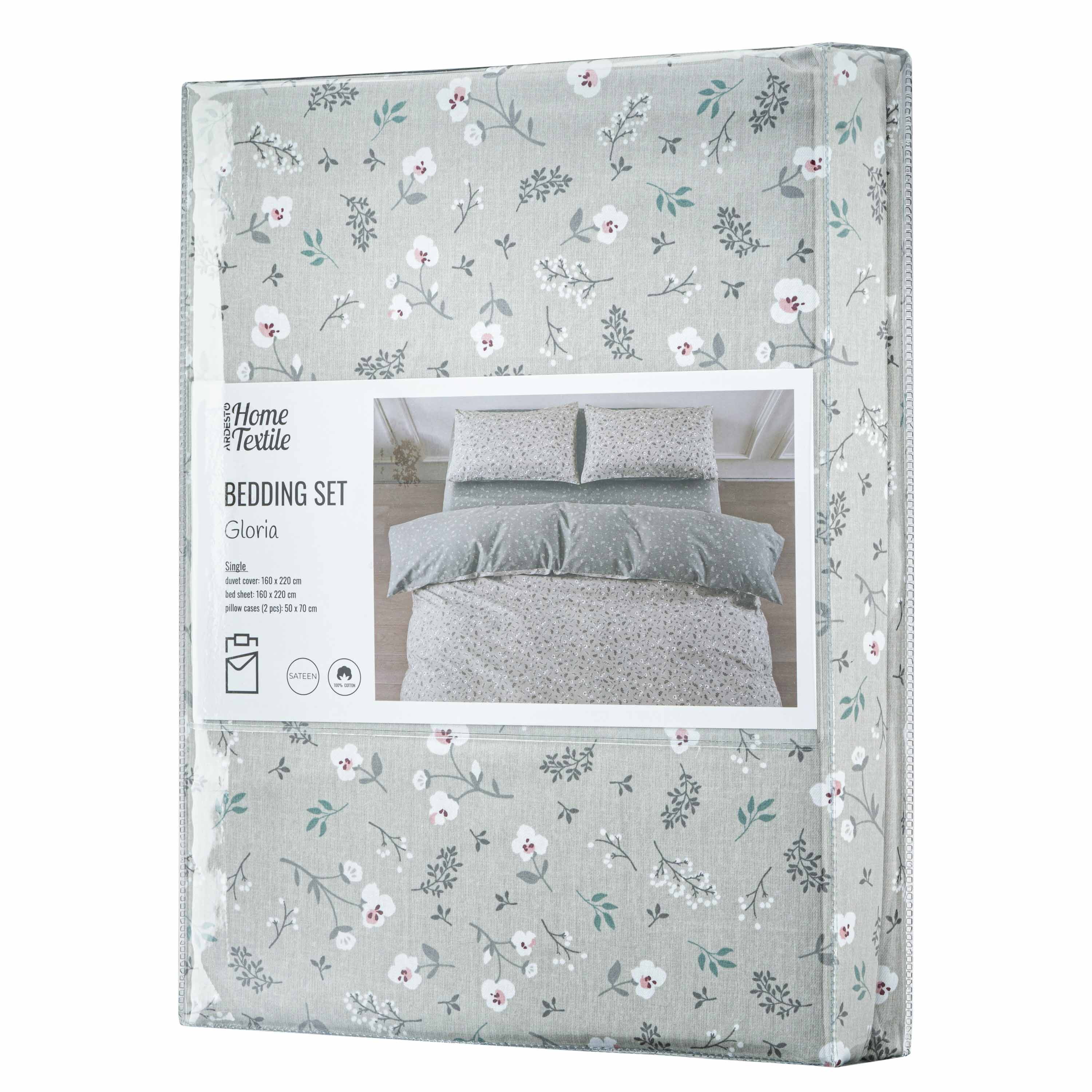 Комплект постільної білизни Gloria – це поєднання витонченого дизайну й безкомпромісної якості. Вироблена зі 100 % бавовняного сатину щільністю 200 ТС, постіль подарує винятковий комфорт і затишок. М’яка тканина ніжно пестить шкіру, забезпечуючи її дихання і створюючи відчуття свіжості та легкості. Розкішний дизайн із квітковими мотивами додає спальному місцю елегантності та спокою.