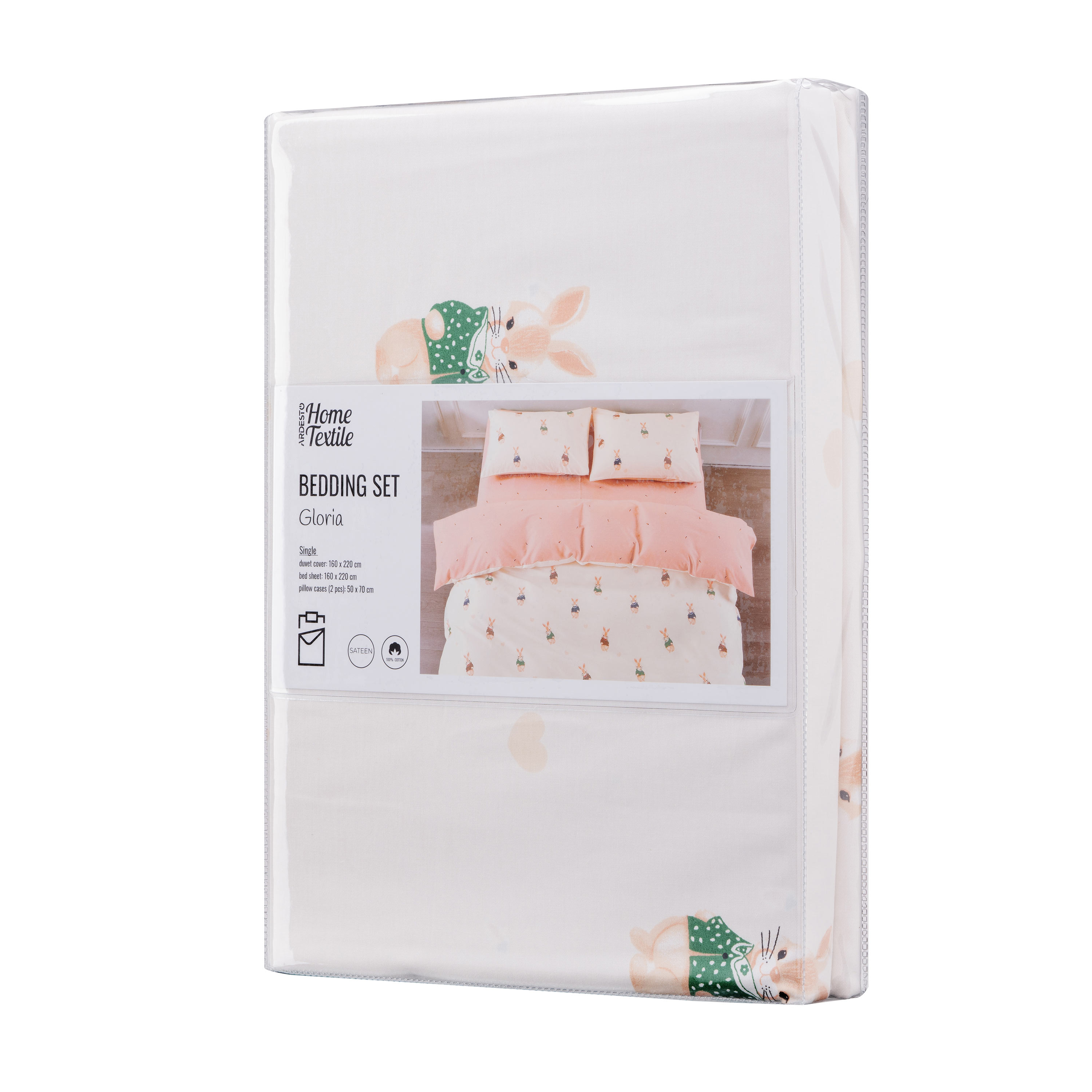 • Комплект постільної білизни Gloria – це поєднання витонченого дизайну й безкомпромісної якості. Вироблена зі 100 % бавовняного сатину щільністю 200 ТС, постіль подарує винятковий комфорт і затишок. М’яка тканина ніжно пестить шкіру, забезпечуючи її дихання і створюючи відчуття свіжості та легкості. Дизайн із милим принтом додає спальному місцю особливого шарму.