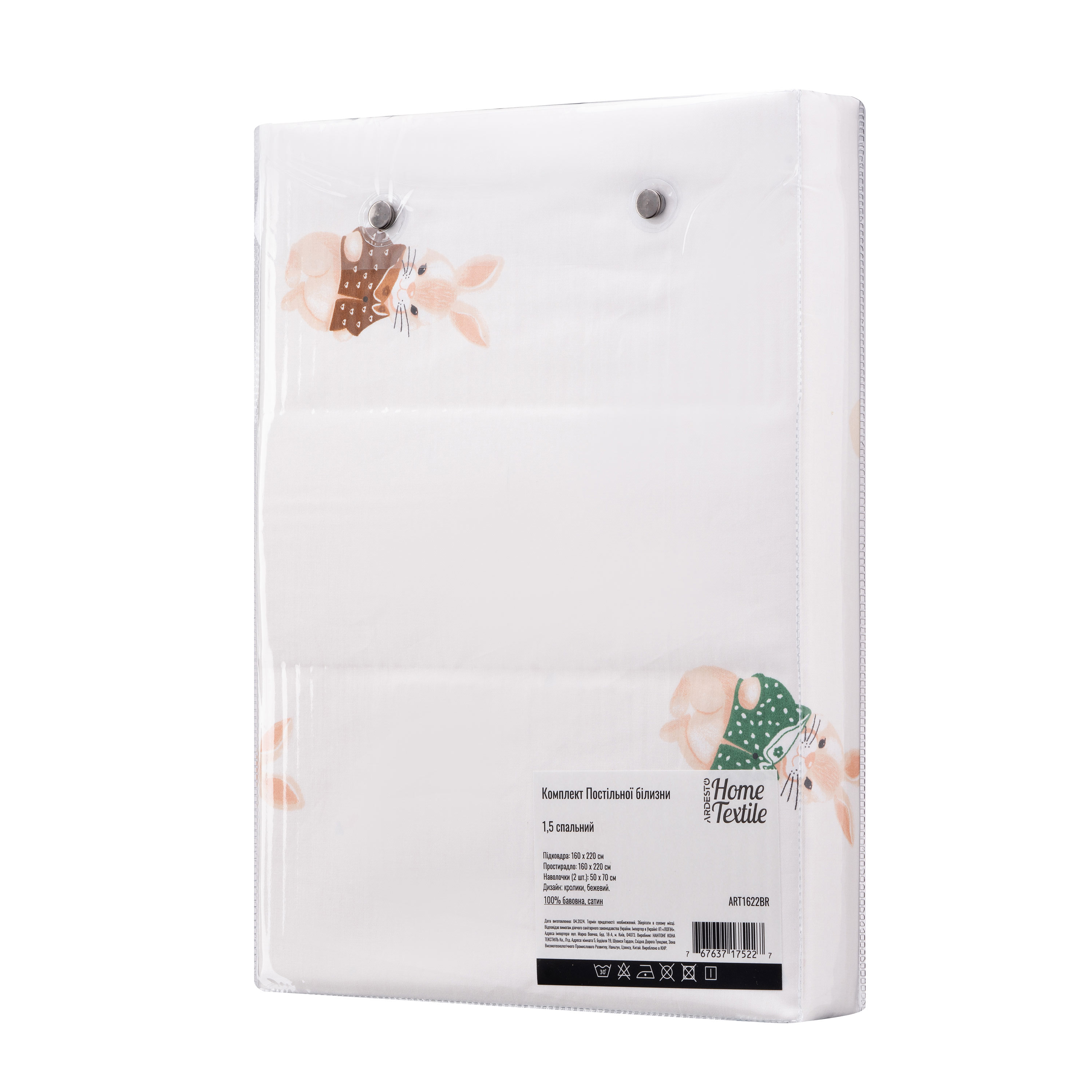 Комплект постільної білизни ARDESTO Gloria, півтораспальний євро, сатин, кролики, бежевий (ART1622BR)