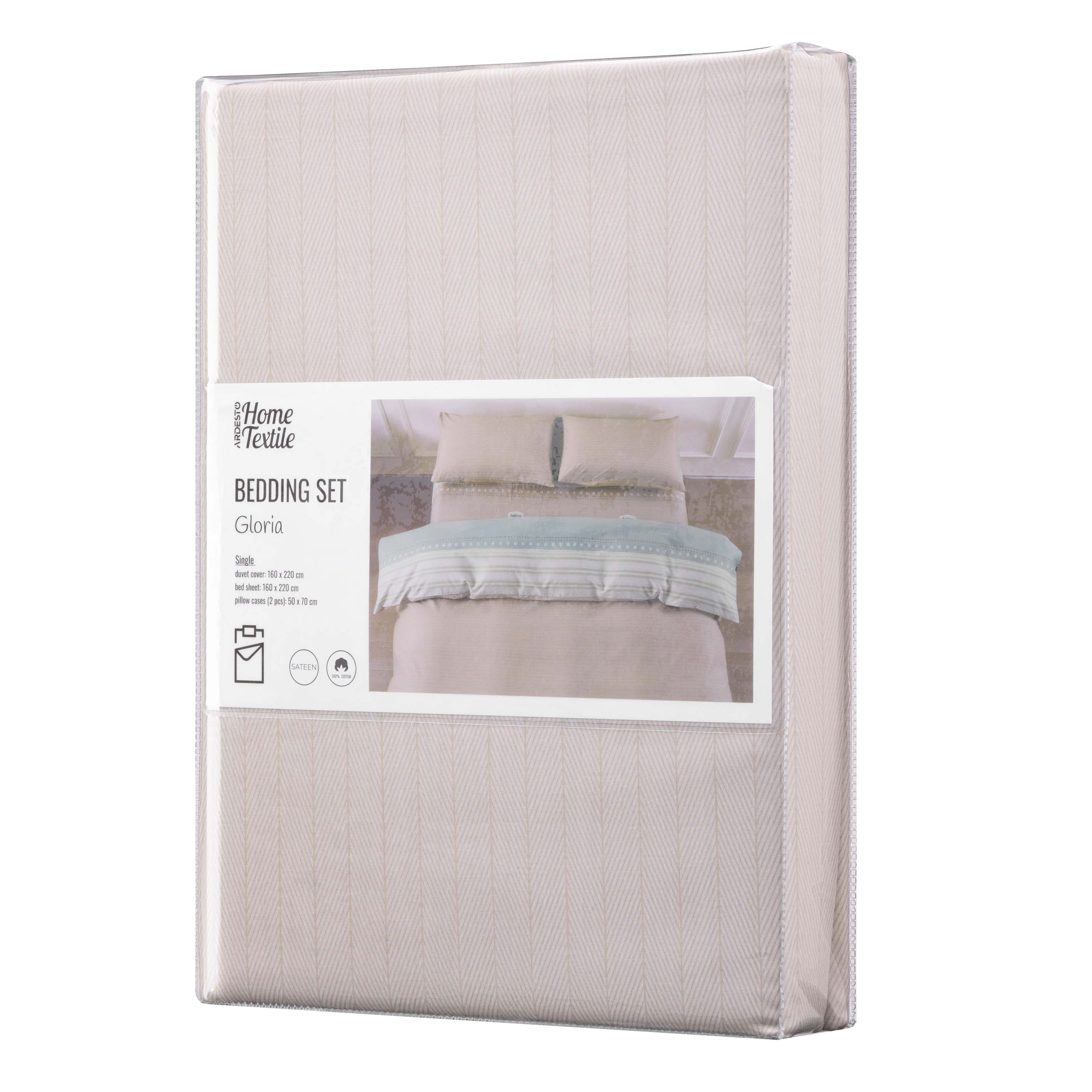 Комплект постільної білизни Gloria – це поєднання витонченого дизайну й безкомпромісної якості. Вироблена зі 100 % бавовняного сатину щільністю 200 ТС, постіль подарує винятковий комфорт і затишок. М’яка тканина ніжно пестить шкіру, забезпечуючи її дихання і створюючи відчуття свіжості та легкості. Дизайн ніжного коричневого відтінку зі смужками додає спальному місцю елегантності та сучасного стилю.