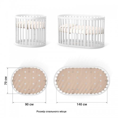 Комплект розширення до ліжка Верес ЛД14 Рим дозволить збільшити спальне місце з 90х70 см до 140х70 см. У трансформованому ліжечку дитина зможе спати до 6-7 років.
