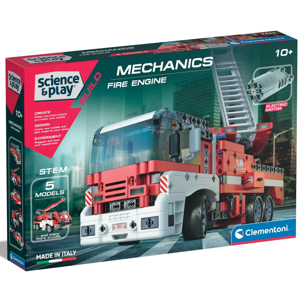 Конструктор 5 в 1 Clementoni "Fire Engine" з електродвигуном для створення п'яти моделей рятувального транспорту.