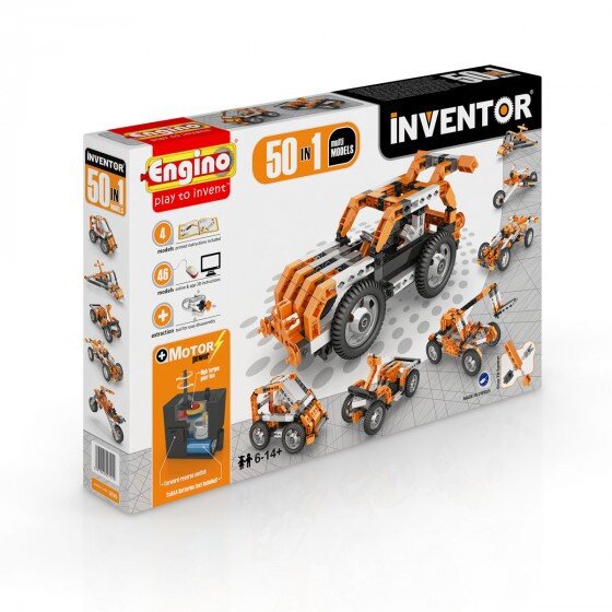 Конструктор серії INVENTOR MOTORIZED 50 до 1 з електродвигуном дозволить дитині особисто створити «живі» моделі, використовуючи безпечний електромотор. Яскраві оригінальні деталі додадуть грі особливого інтересу.