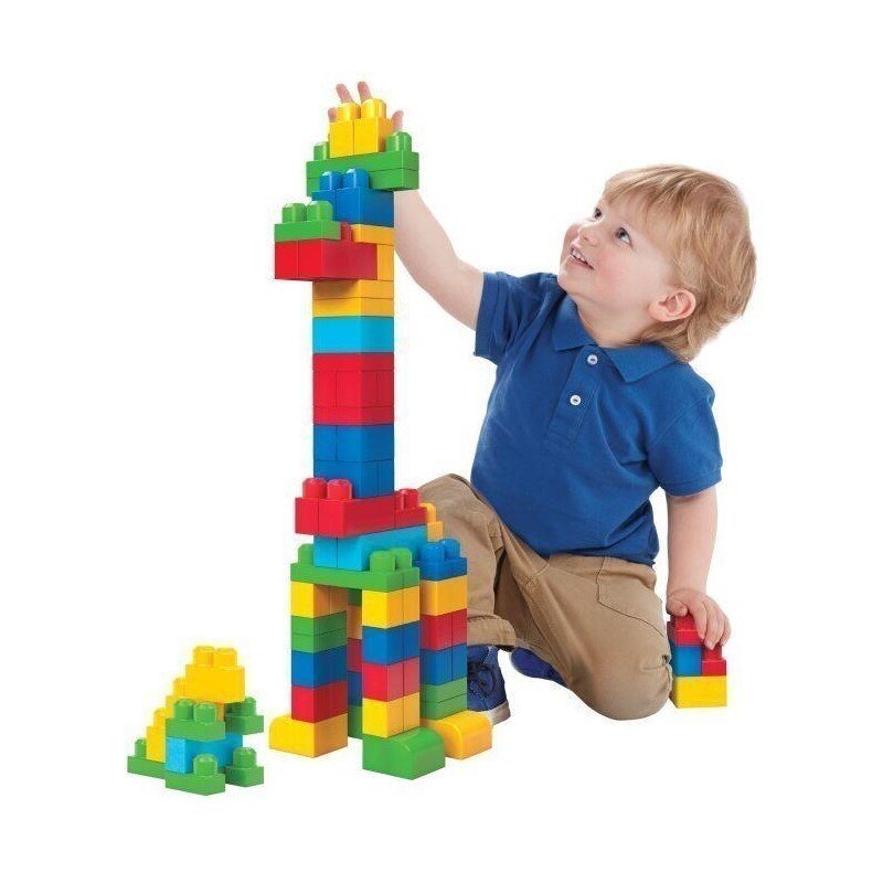 Цей чудовий набір з 80 кольорових блоків, упакованих в безпечну для екології (без ПВХ) сумку на блискавці - прекрасний подарунок для кожного малюка. Великі та зручні блоки відмінно підходять для веселої будівельної забави, повної фантазії. Сумісність з іншими блоками і набором Mega Bloks First Builders.