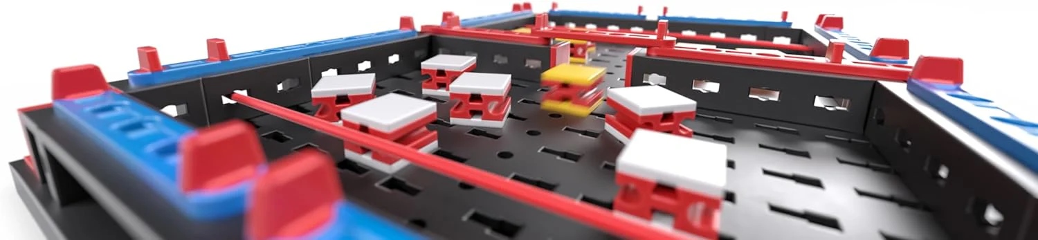 На старт, увага, марш! Хто першим очистить своє ігрове поле від кубиків раніше за суперника? Для цього ви повинні натягнути гумку і вистрілити ігровими фігурками через ворота в поле суперника. Варто діяти швидко!