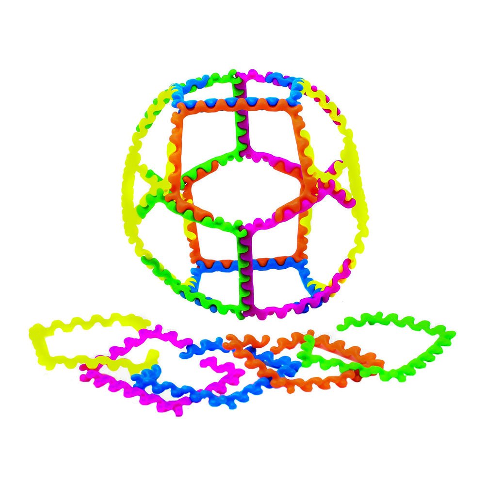 Конструктор допомагає в практичному вивченні тривимірної геометрії. Яскраві зигзаги розвивають навички дрібної моторики і уяву малюка.