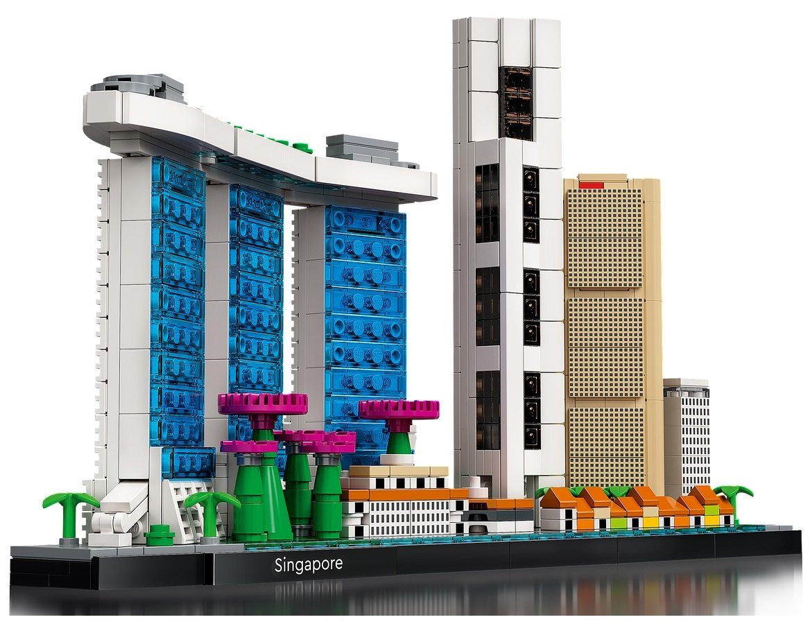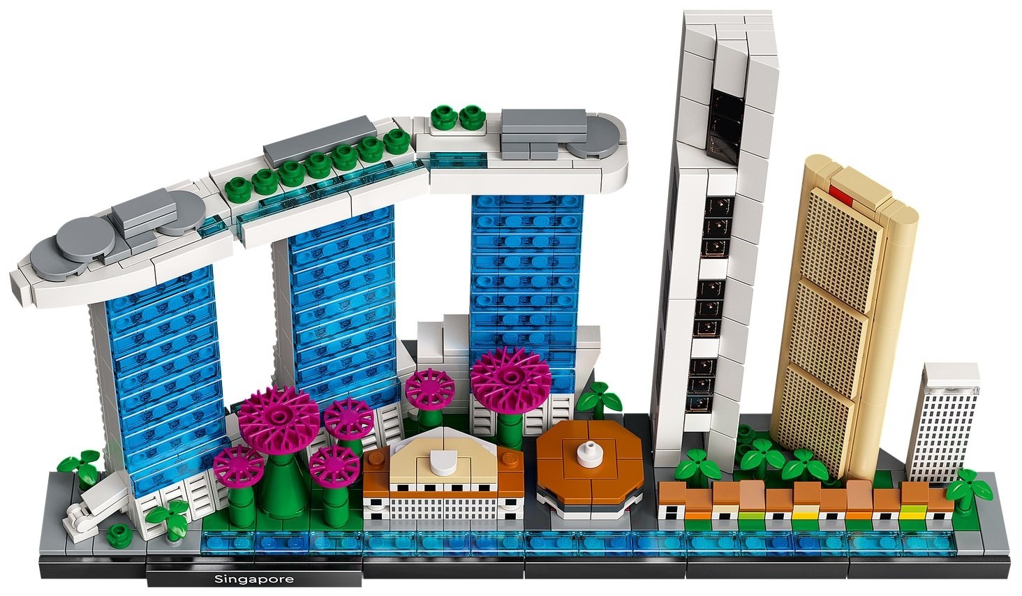 Перенесіться одного до з найнеймовірніших міст світу, зібравши колекційну модель панорами Сінгапуру з конструктором LEGO Architecture Сінгапур. Насолоджуйтеся збиранням і побудуйте: готелі Marina Bay Sands та Fullerton Hotel Singapore, хмарочоси OCBC Centre та One Raffles Place, продуктовий ринок «Лау Па Сат» гай супердерев у парку «Сади біля Затоки». Додайте елементи LEGO, що зображають річку Сінгапур та дерева, щоб завершити найбільшу та найскладнішу модель панорами міста LEGO на сьогоднішній день.