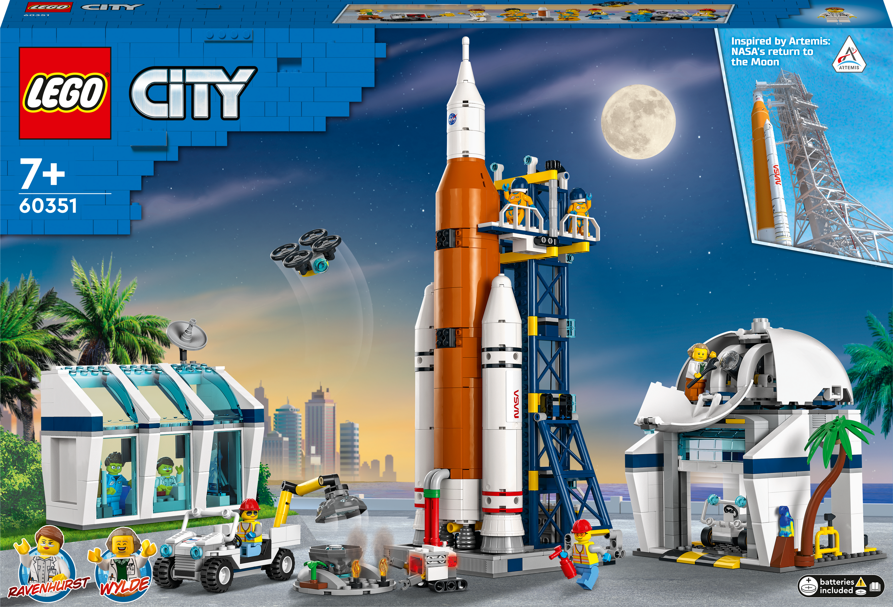 Ігровий набір «Космодром» LEGO City (60351) наповнений елементами, що ґрунтуються на техніці НАСА. Тут є величезний стартовий комплекс, ракета з місцем для двох космонавтів та планетарний всюдихід. Крім того, у наборі є деталізований купол для спостереження та центр керування польотом, а також службовий автомобіль, дрон та шість мініфігурок для веселої рольової гри. Поєднайте цей набір з іншими з популярної космічної серії іграшок LEGO City, щоб отримати ще більше задоволення.