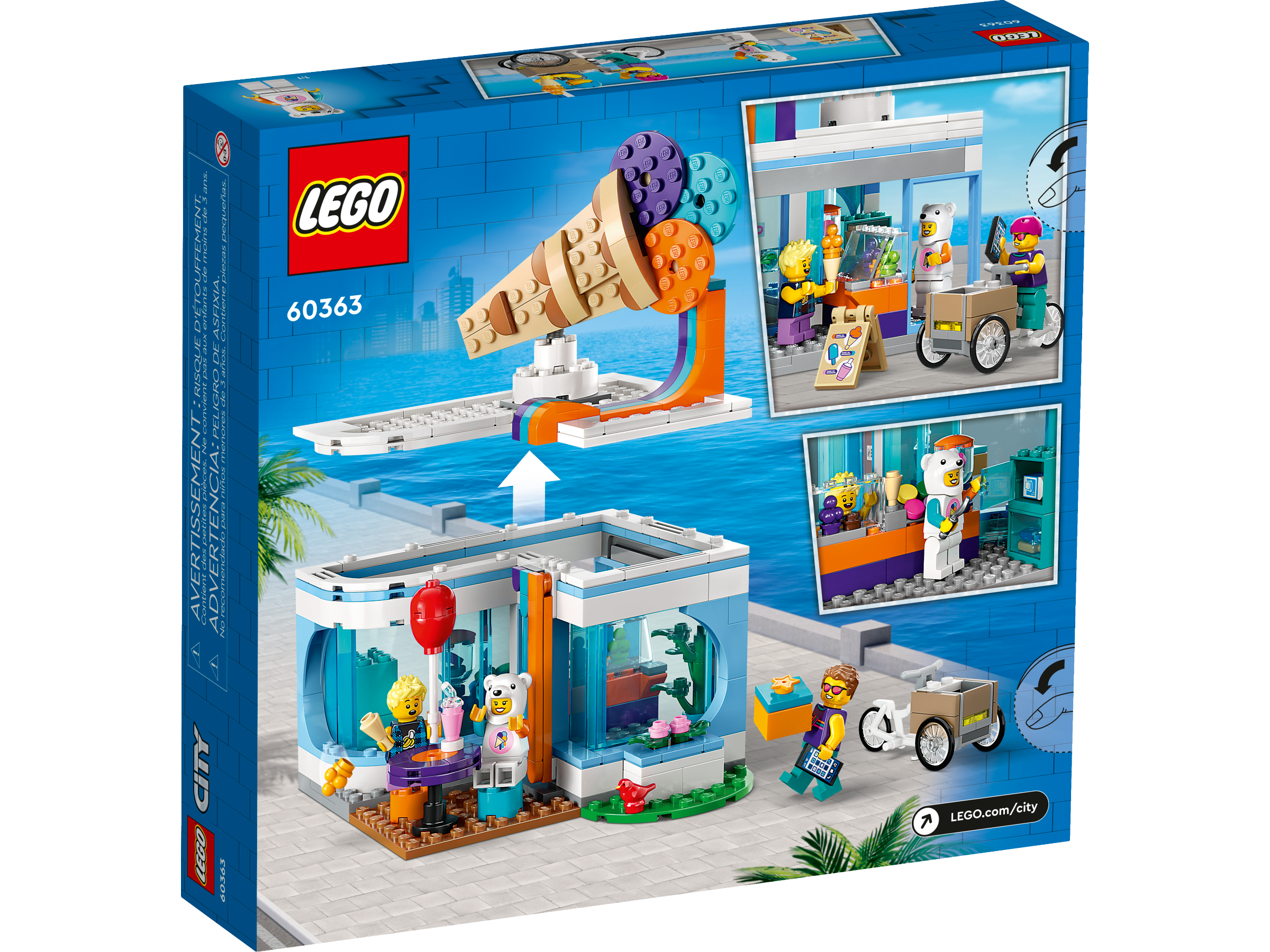 • Іграшкова крамниця морозива — додайте ще більше веселощів до наборів LEGO® City з цим іграшковим конструктором «Крамниця морозива» (60363) для шанувальників вечірок, кафе з морозивом і крутих іграшок віком від 6 років