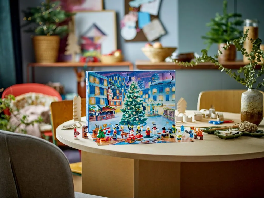 Смішні персонажі. Сюрпризи включають мініфігурки містера та місіс Клаус, співака пісень, хокеїста, крижаного скульптора та фаната TikTok, а також фігурки сніговика, північного оленя, цуценя та кошеня.