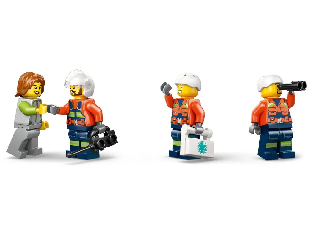 LEGO City Рятувальний катер і гелікоптер берегової охорони (60504) — багатофункціональний набір для дітей від 7 років, що включає плавучий катер зі знімними палубами, гелікоптер з вертолітним майданчиком та дві рятувальні шлюпки. Діти можуть спускати шлюпку з рампи, керувати містком, відкривати спальні та кухню, а також піднімати полум'я LEGO для імітації пожежі. У комплекті 5 мініфігурок та фігурка собаки для творчих пошуково-рятувальних сюжетів. Усі 3 човни тримаються на воді. Містить 742 деталі та інструкції в додатку LEGO Builder з 3D-переглядом.