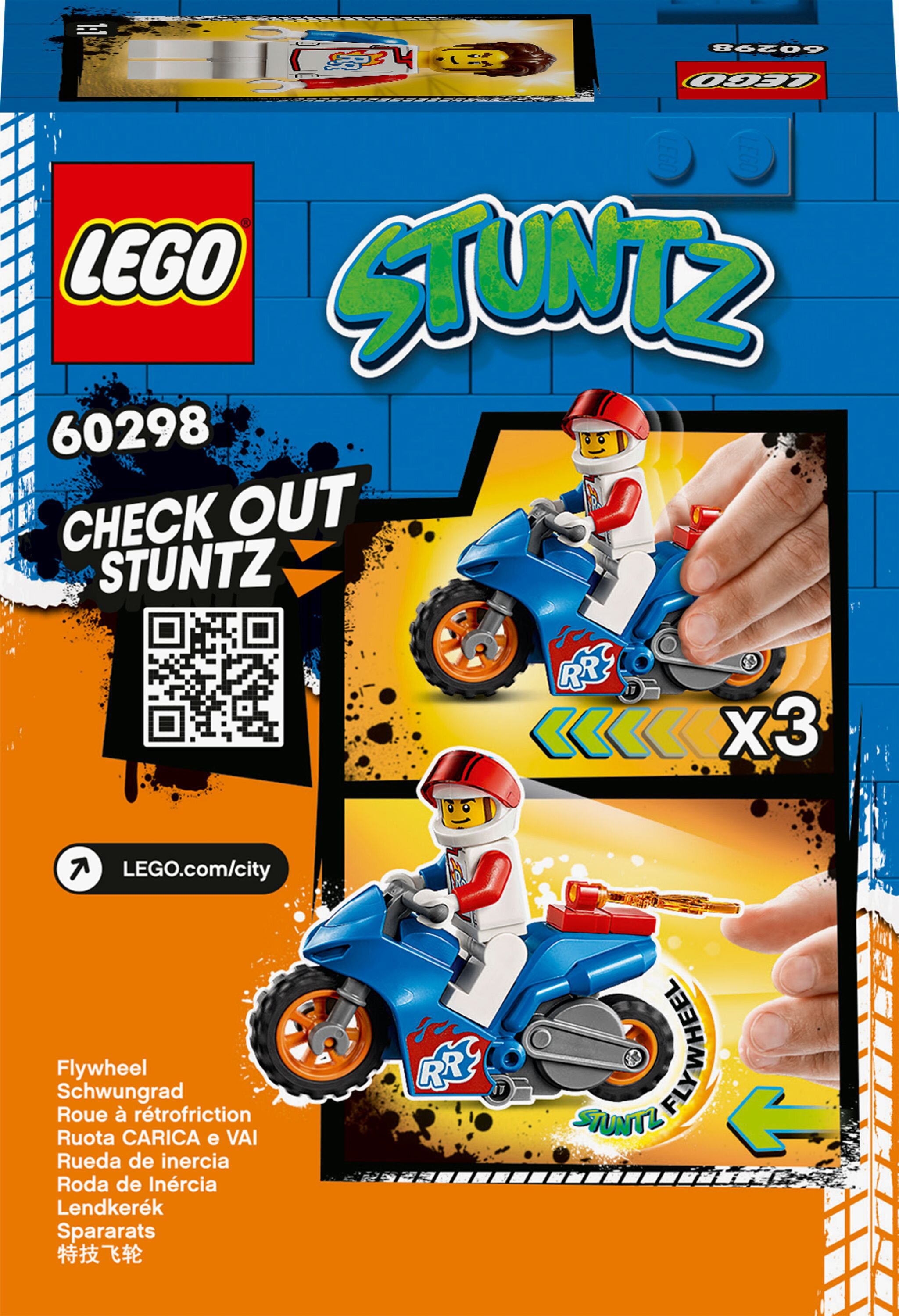 Підніміть дитячу гру в небеса з набором «Реактивний трюковий мотоцикл» LEGO City (60298), в якому є працюючий від маховика неймовірний мотоцикл для трюків, а також персонаж з серіалу «ЛЕГО Сіті. Пригоди» Ракетний Гонщик — ідеальна комбінація для видовищного каскадерської вистави. У цьому ігровому наборі міститься проста у використанні інструкція, а в безкоштовному додатку LEGO Building Instructions для смартфонів і планшетів для нього є інструкції Instructions PLUS. Це інтерактивне керівництво по збірці з функціями масштабування, обертання і перегляду допомагає юним шанувальникам LEGO стати майстрами будівництва!