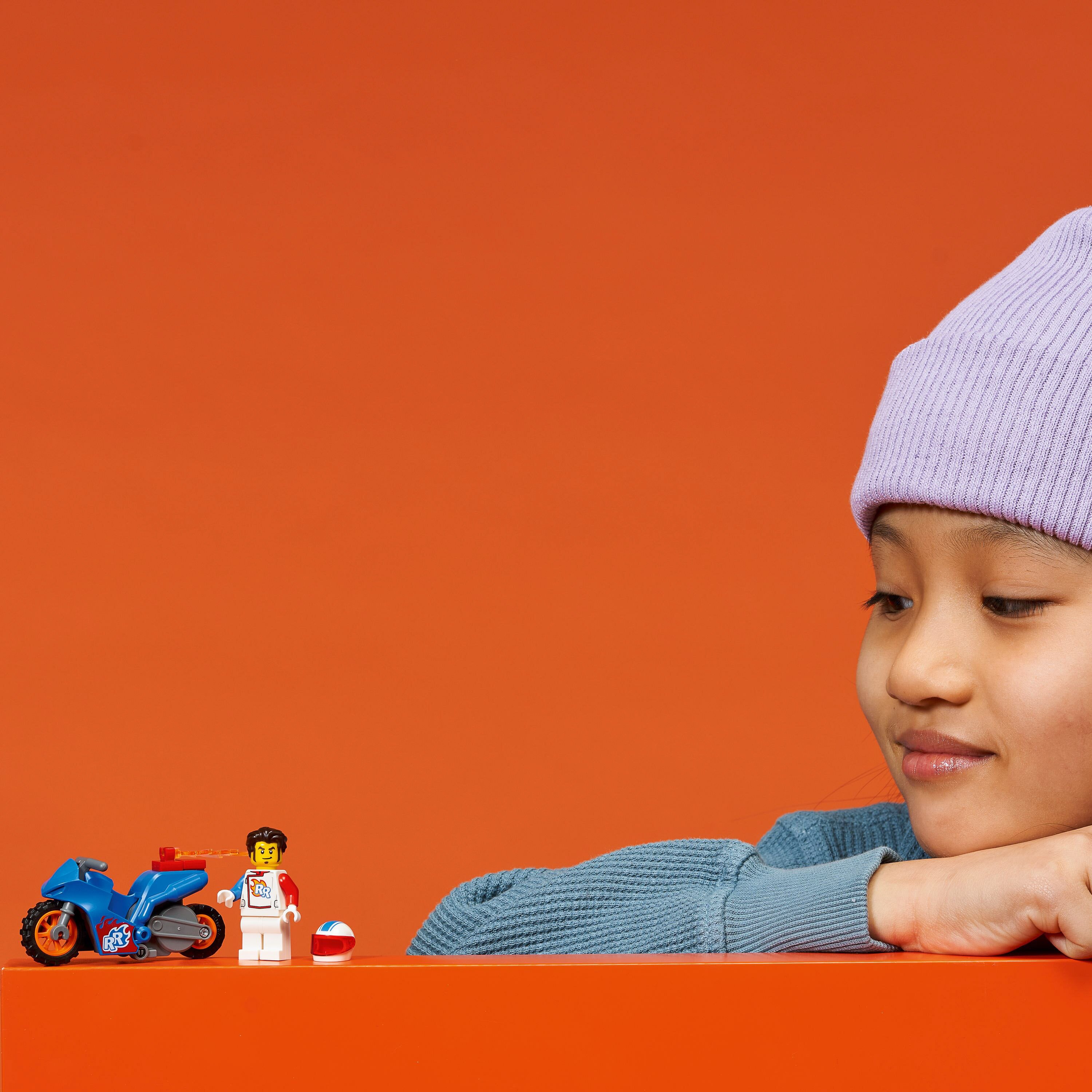 Іграшка «Реактивний трюковий мотоцикл» LEGO City — це відмінний подарунок на Новий рік, день народження або просто без приводу для любителів каскадерів і дітей у віці від 5 років. Розміри реактивного мотоцикла в зібраному вигляді: більше 3 см у висоту, 6 см в довжину і 2 см в ширину. Об'єднайте набір «Реактивний трюковий мотоцикл» з іншими з серії LEGO City Stuntz для ще більш грандіозних трюків.