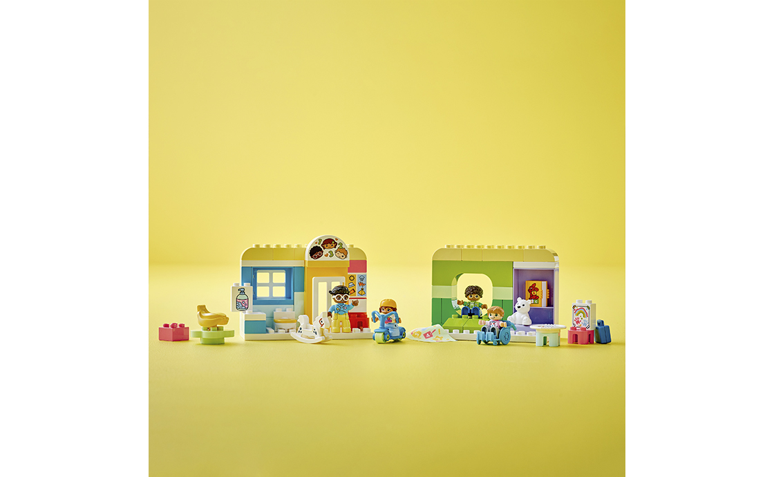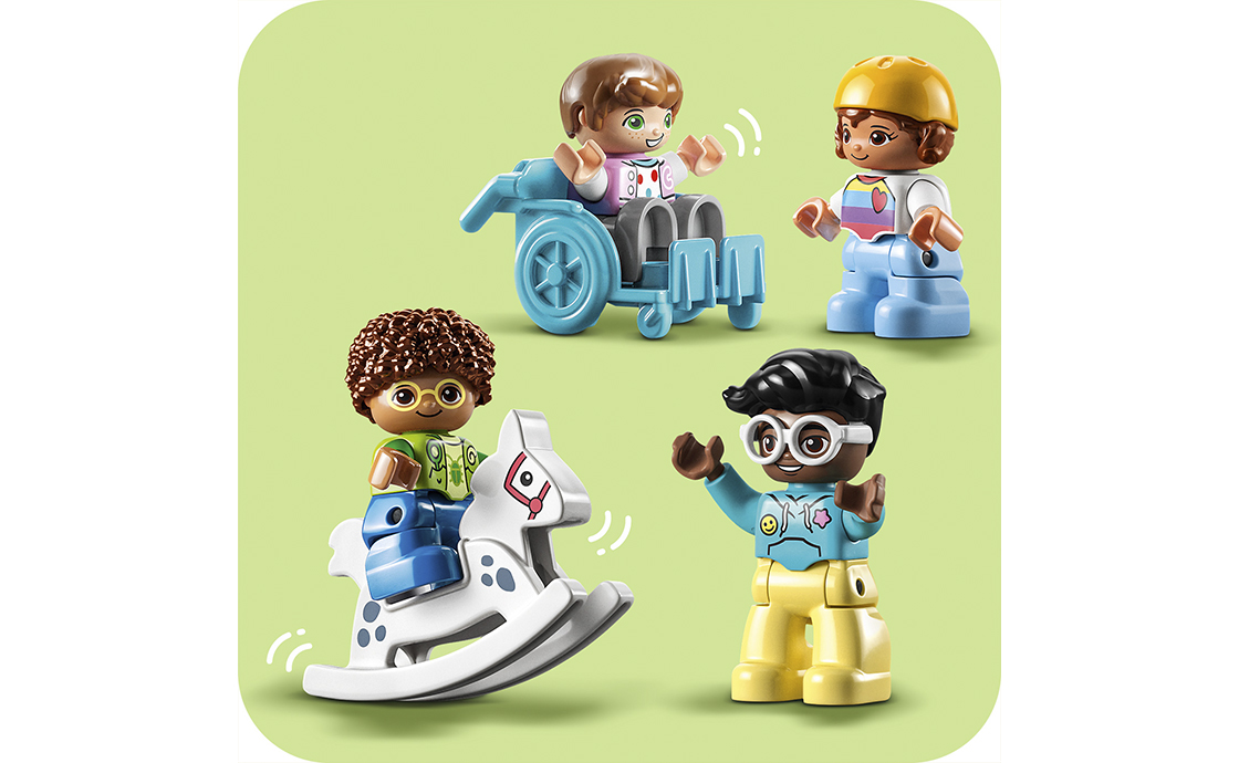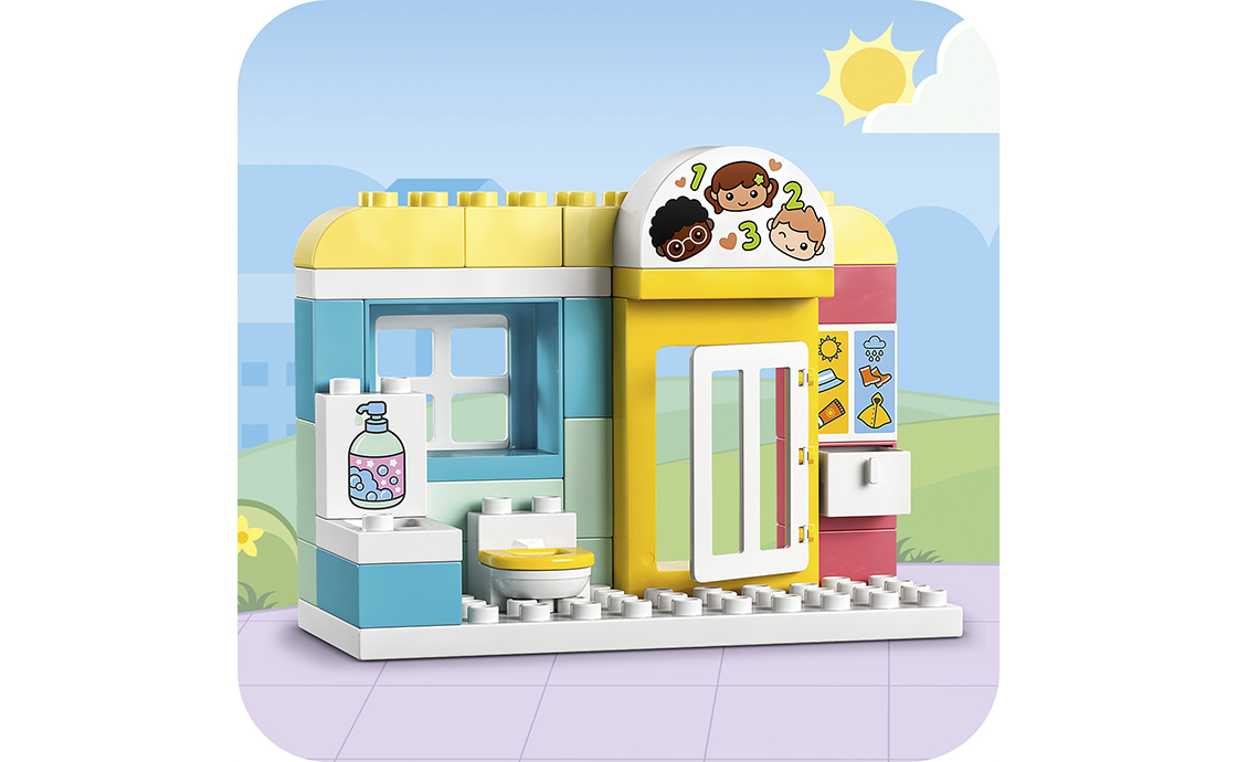 Піднімайтеся на світанку в цей чарівний дитячий садок, де кожна дитяча мрія стає реальністю. Під пісні птахів та сміху друзів, ваші персонажі DUPLO зустрічаються на кумедних дитячих майданчиках. Від дружніх розмов на гірці до захоплюючих ігор тут кожен день повний пригод. Спеціальні аксесуари дозволять вашим дітям створити свої власні історії, розвиваючи уяву та соціальні навички.