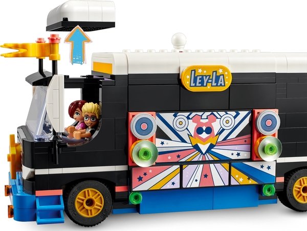 Мешканці Хартлейк-Сіті знають як і люблять розважатися. Але найголовніше - вони знають як підтримати одне одного, коли йдеться про нові захоплення чи ідеї. Набір LEGO "Автобус для музичного туру попзірки" дає змогу поєднати все це, адже в ньому сором'язлива Пейслі перетворюється на суперзірку Лей-Ла з підтримкою з боку Оллі та Ліенн.