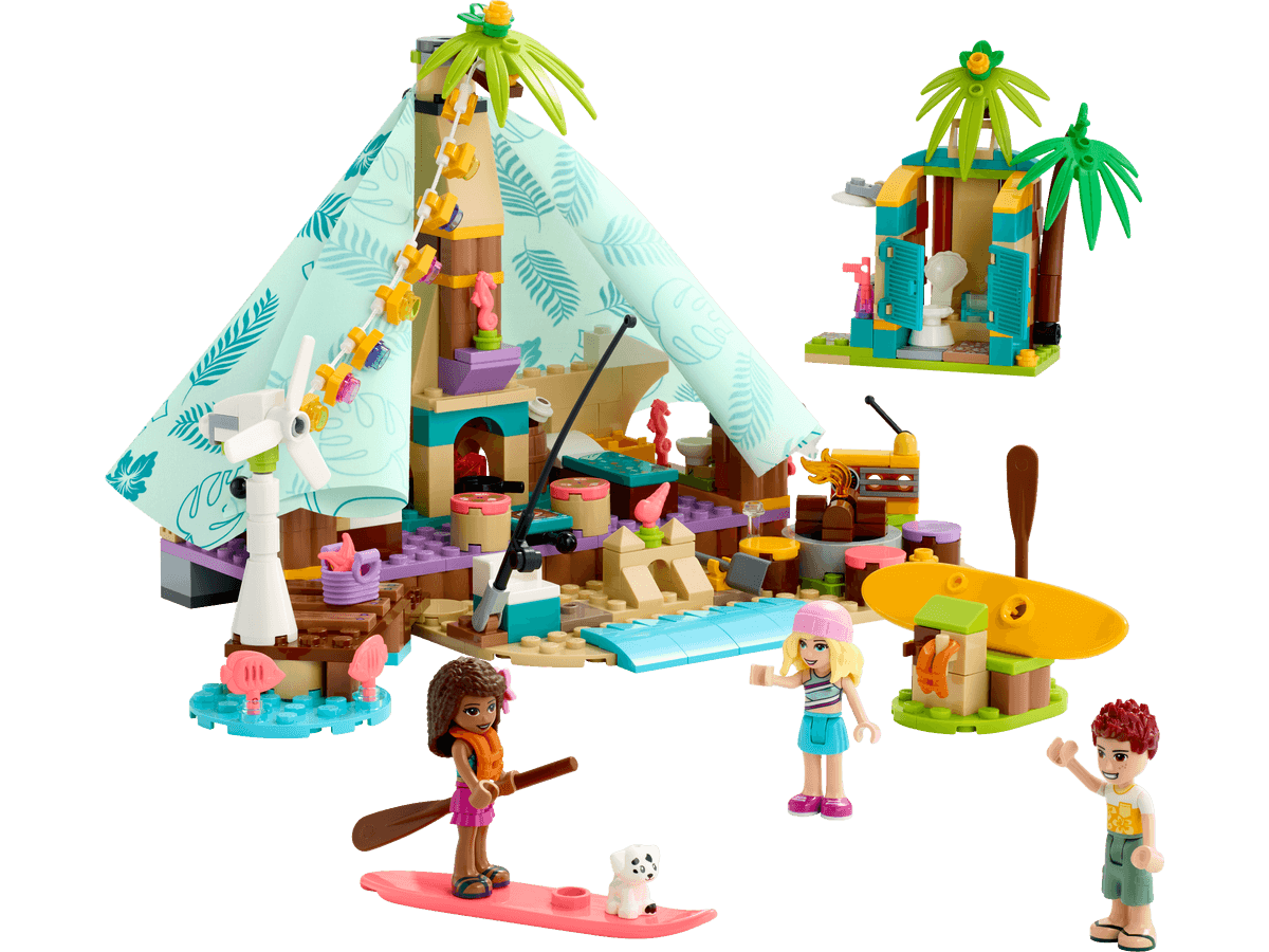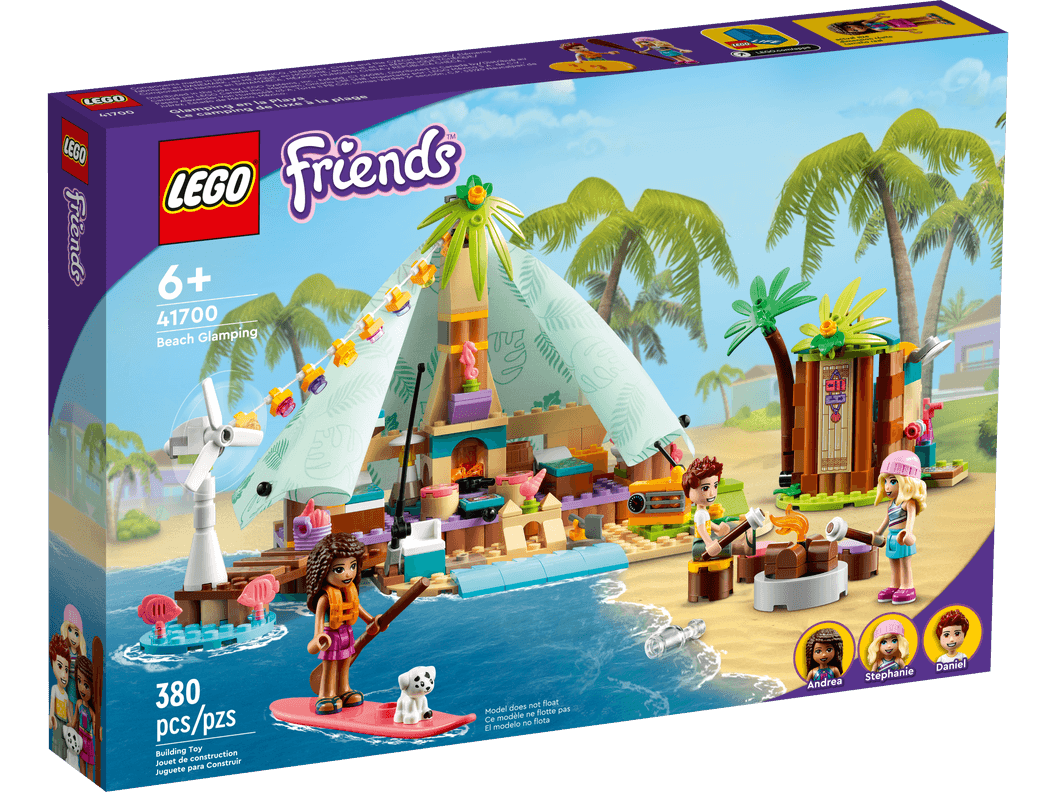 LEGO Friends Кемпінг на пляжі (41700) - набір з безліччю функцій та деталей, щоб надихнути дітей віком від 6 років на багатогодинну гру, пропонуючи їм відтворити свій ідеальний день на пляжі з друзями.