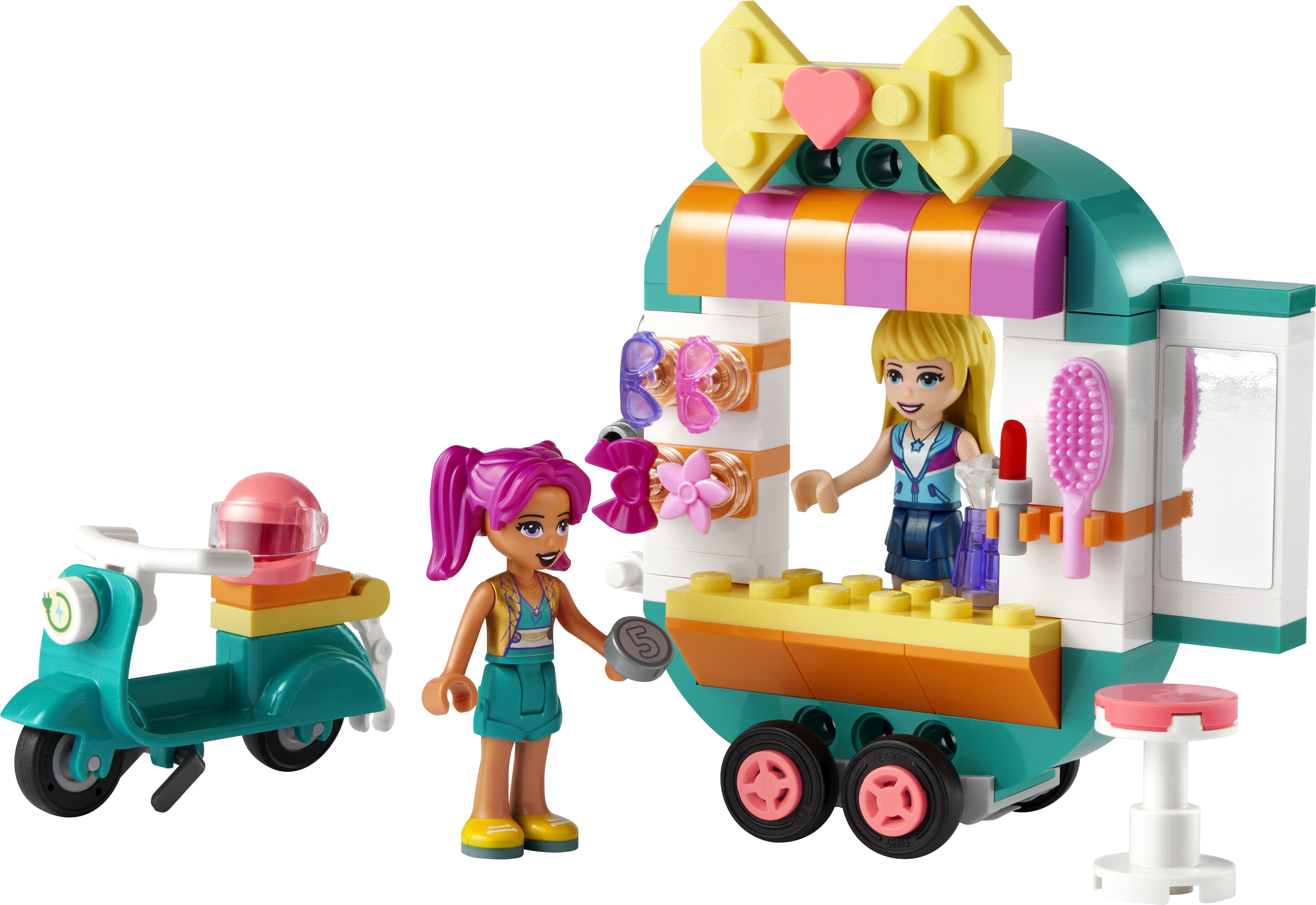Веселий подарунок з будь-якої нагоди для стильних дітей — подаруйте юним візажистам у віці від 6 років LEGO Friends Мобільний бутік моди, щоб вони могли творчо підійти до доставки стилю додому в Хартлейк-Сіті.