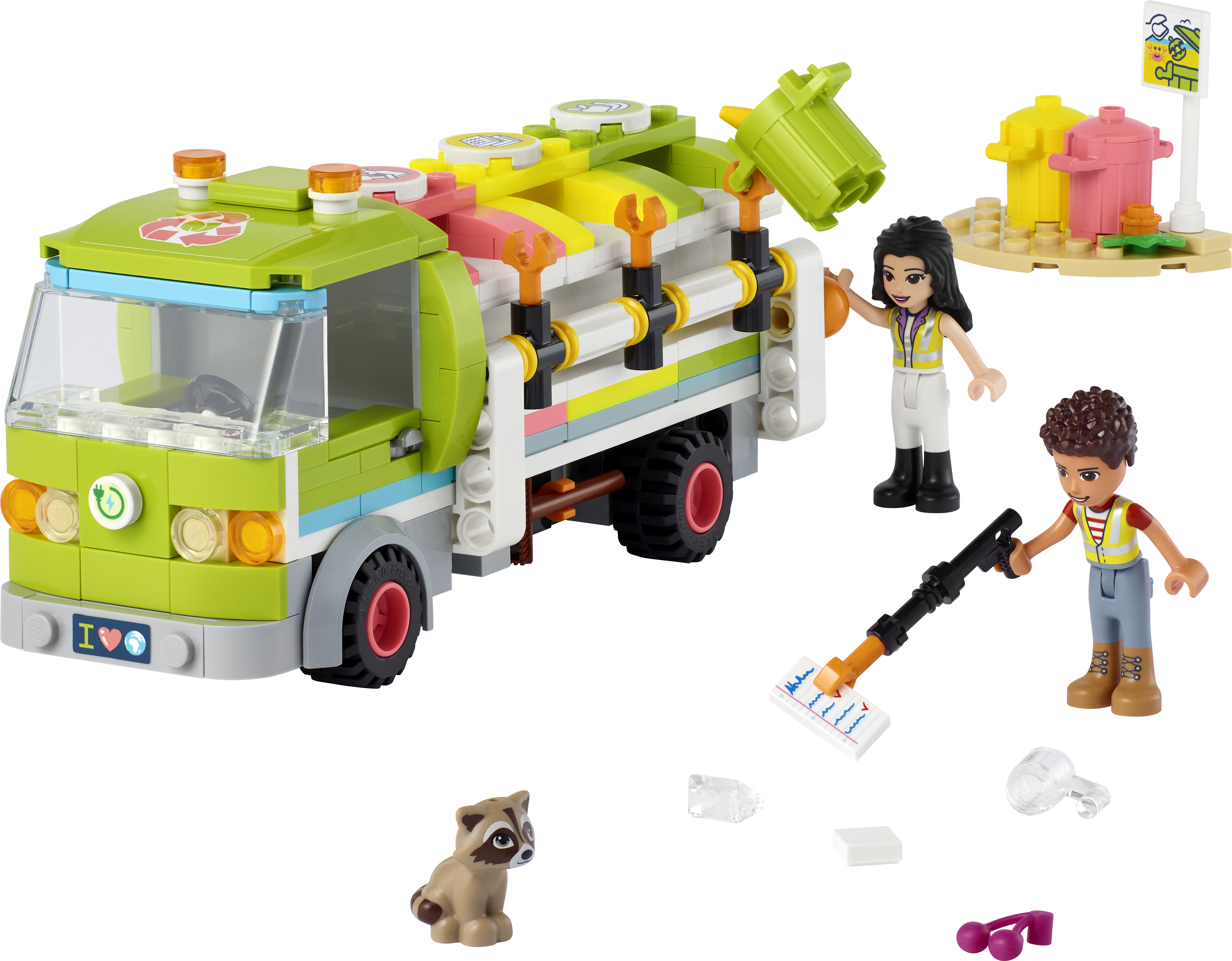 Емма та Рівер їздять берегом на своїй крутій сміттєпереробній вантажівці.