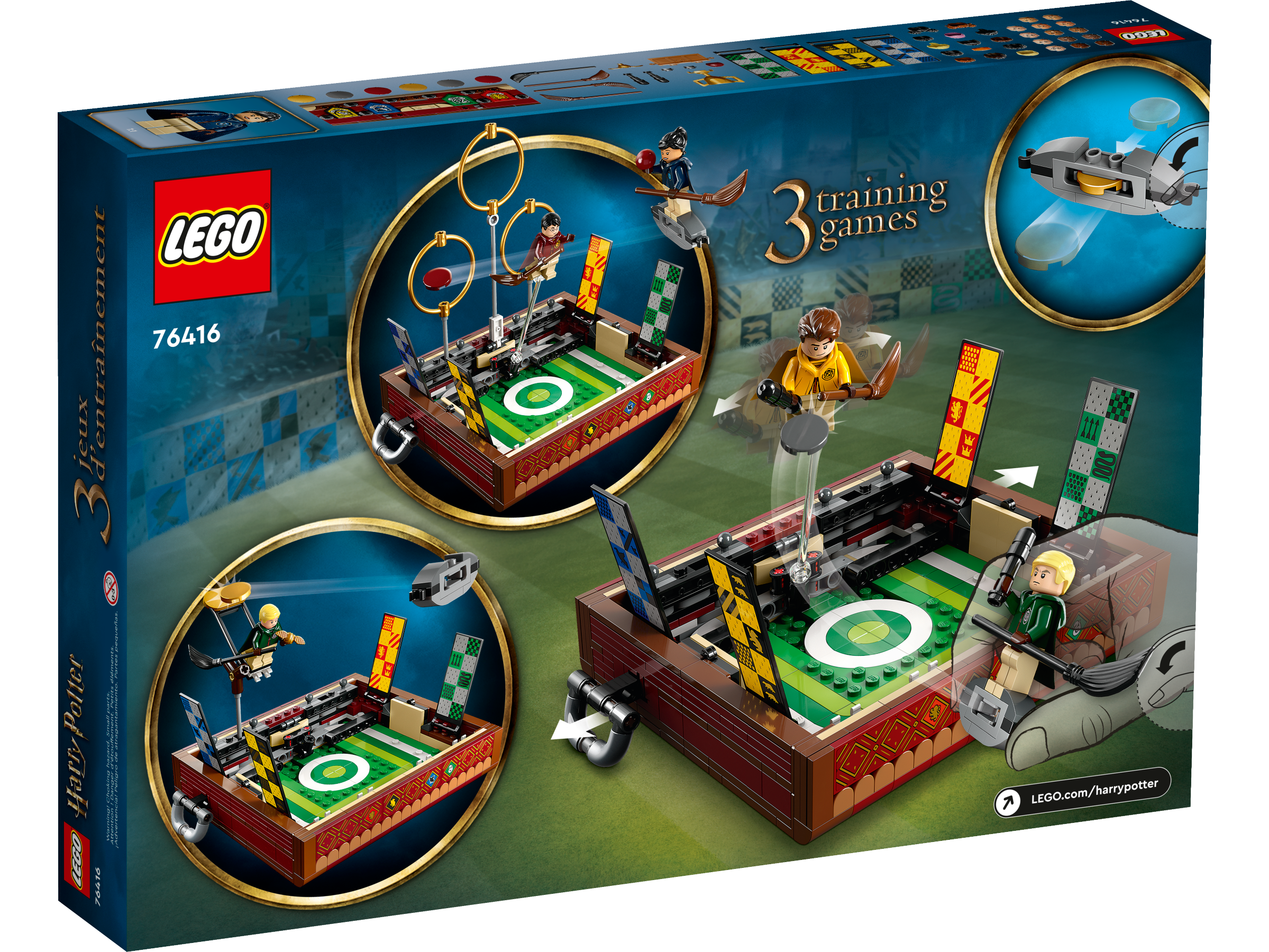Відкрийте багажник, повний чарівного квідичу! Створюйте захоплюючі ігри для 1 або 2 гравців за допомогою збірної іграшки LEGO Harry Potter для квідичу.