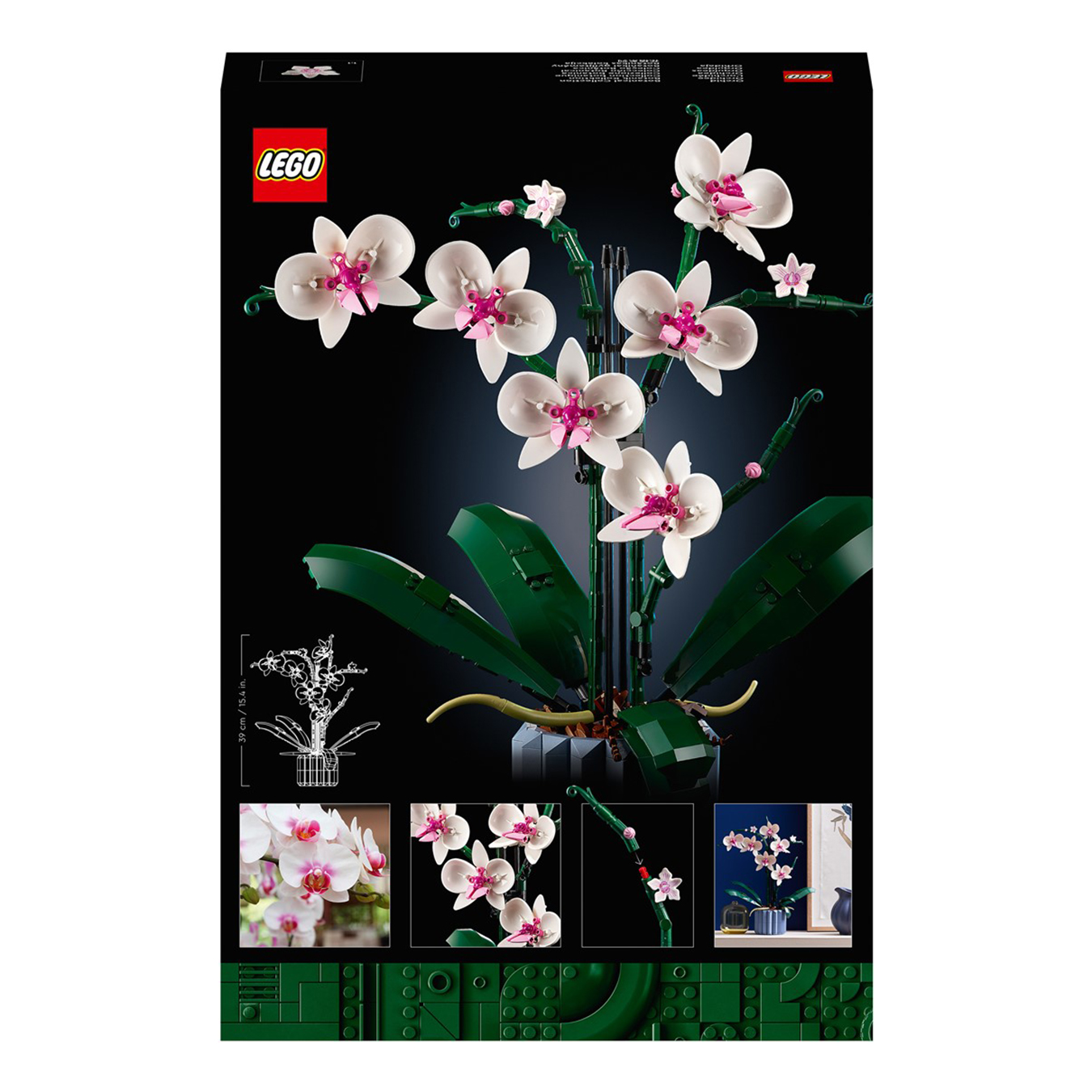 Основна частина орхідеї в наборі LEGO 10311 складається із двох основних стебел, які розходяться на інші гілки. Вони здебільшого складаються з темно-зелених елементів Technic. Також збирається велике зелене листя і дрібні рослини, які проростають у горщику. Як тільки зелень на місці, ви додаєте квіти орхідеї. На рослині є два типи квіток, у тому числі бутони та повністю розкриті квіти. Крім дрібних, у наборі є 6 квіток. Не розкриваючи всіх цікавостей, їх складання Вас точно приємно здивує.