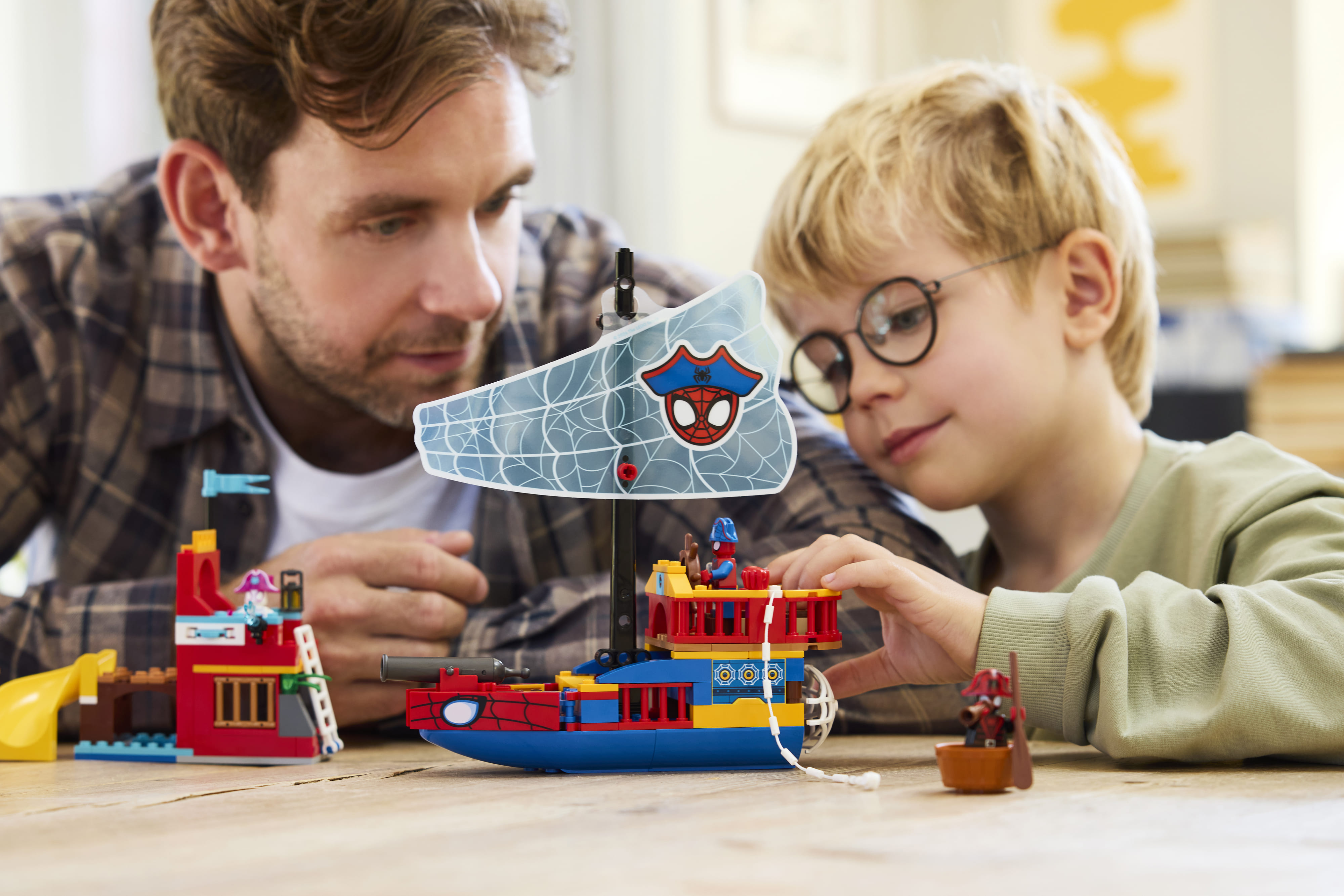 Вирушайте у захопливу гру на борту креативної іграшки-павука «Піратський корабель команди Spidey» (11208) з Павуком, Зеленим Гобліном, Павуком-привидом та Майлзом «Крутиться» Моралесом. Цей набір пропонує чудовий спосіб для хлопчиків, дівчаток та дітей віком від 4 років розвивати навички, досліджуючи море та Острів Павуків. Ця багатофункціональна іграшка-павук включає піратський корабель, Острів Павуків з гіркою, корабель Зеленого Гобліна та менший човен. На піратському кораблі є гармата, на острові дисковий стрілець, а на кораблі Зеленого Гобліна — стрільці.