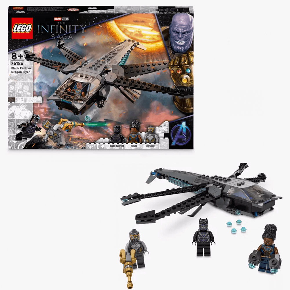 Флаєр «Дракон» Чорної Пантери LEGO® Marvel (76186) - це одним з найзнаменитіших літальних апаратів в кінофільмах в руках юних супергероїв. Особливий подарунок для шанувальників фільмів Marvel у віці від 8 років.
