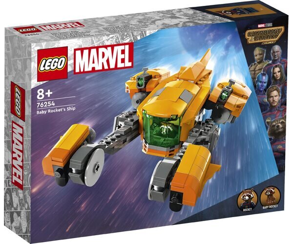 Конструктор LEGO Marvel Зореліт малюка Ракети із фільму «Вартові Галактики. Частина 3» студії Marvel відправить дітей у нескінченні фантастичні пригоди. Цей конструктор втілює зореліт, на якому малюк Ракета тікає від своїх творців у фільмі. Космічний корабель має кабіну, що відкривається, регульоване шасі й два шипові шутери.