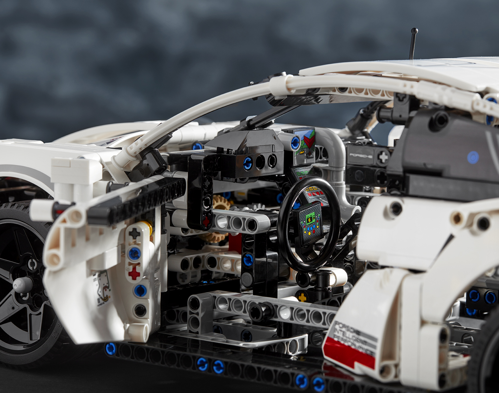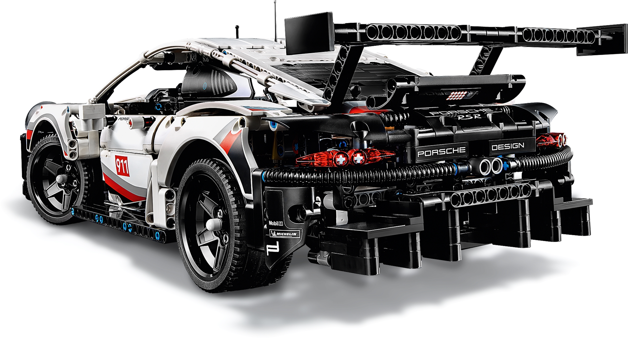 Познайомся з інноваційними інженерними рішеннями й унікальними традиціями майстерності одного з провідних світових виробників автомобілів із цією дивовижною моделлю Porsche 911 RSR LEGO Technic. Копія оригінального автомобіля, розроблена в співпраці з компанією Porsche, точно передає яскравий образ, характерний для її прототипу, і його знайомий багатьом силует, який був спеціально створений так, щоб витримувати величезні навантаження на перегонах серії GT. Зовнішній вигляд автомобіля доповнений заднім крилом «Лебедина шия», заднім дифузором і спеціальними бічними дзеркалами. Це зроблено для досягнення максимальної аеродинамічної ефективності. Відчинивши двері, ти виявиш салон із безліччю реалістичних деталей: екран радара, кермове керування, яке функціонує, систему гасіння вогню й навіть мапу треку Лагуна Сека, яка надрукована на дверях водія.