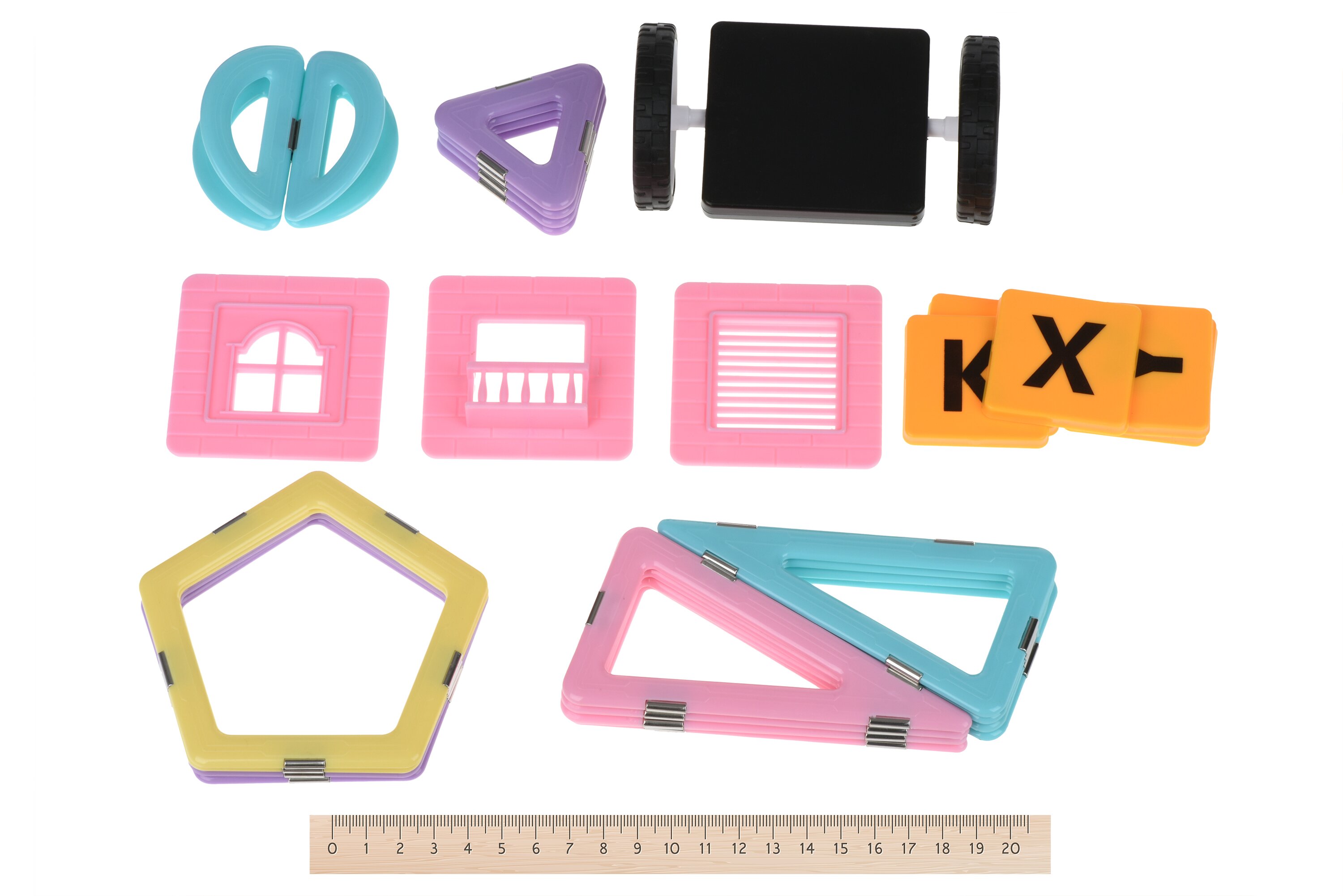 Магнітний конструктор Magplayer у зручному пластиковому боксі. Контейнер оснащений ручкою для легкого транспортування. Особливість деталей у тому, що по їхньому периметру розташовані магніти. Завдяки такій особливості деталі легко скріплюються; конструкція виходить добре зафіксованою, стійкою і міцною. Набір можна розширювати і доповнювати елементами з інших наборів Magplayer.