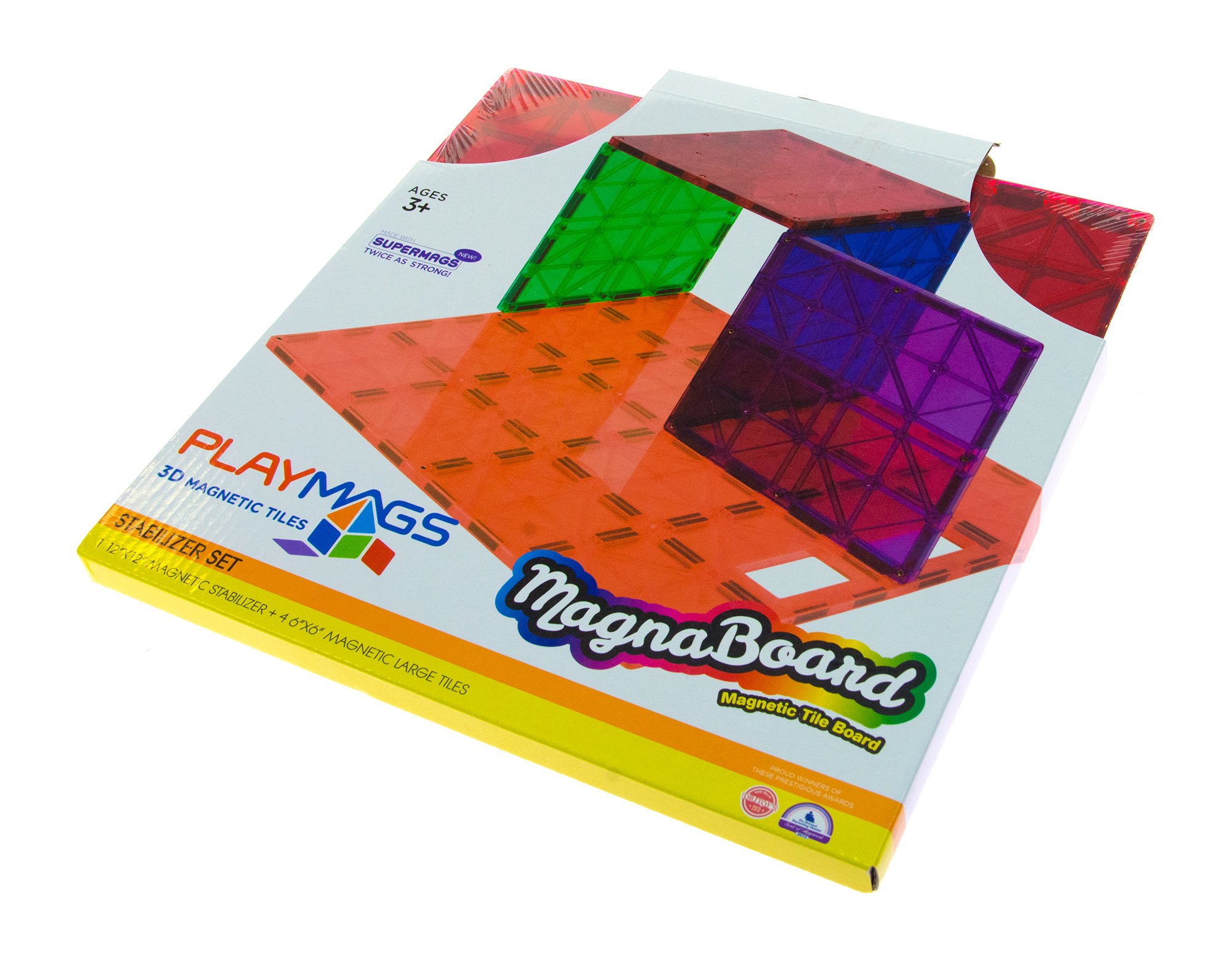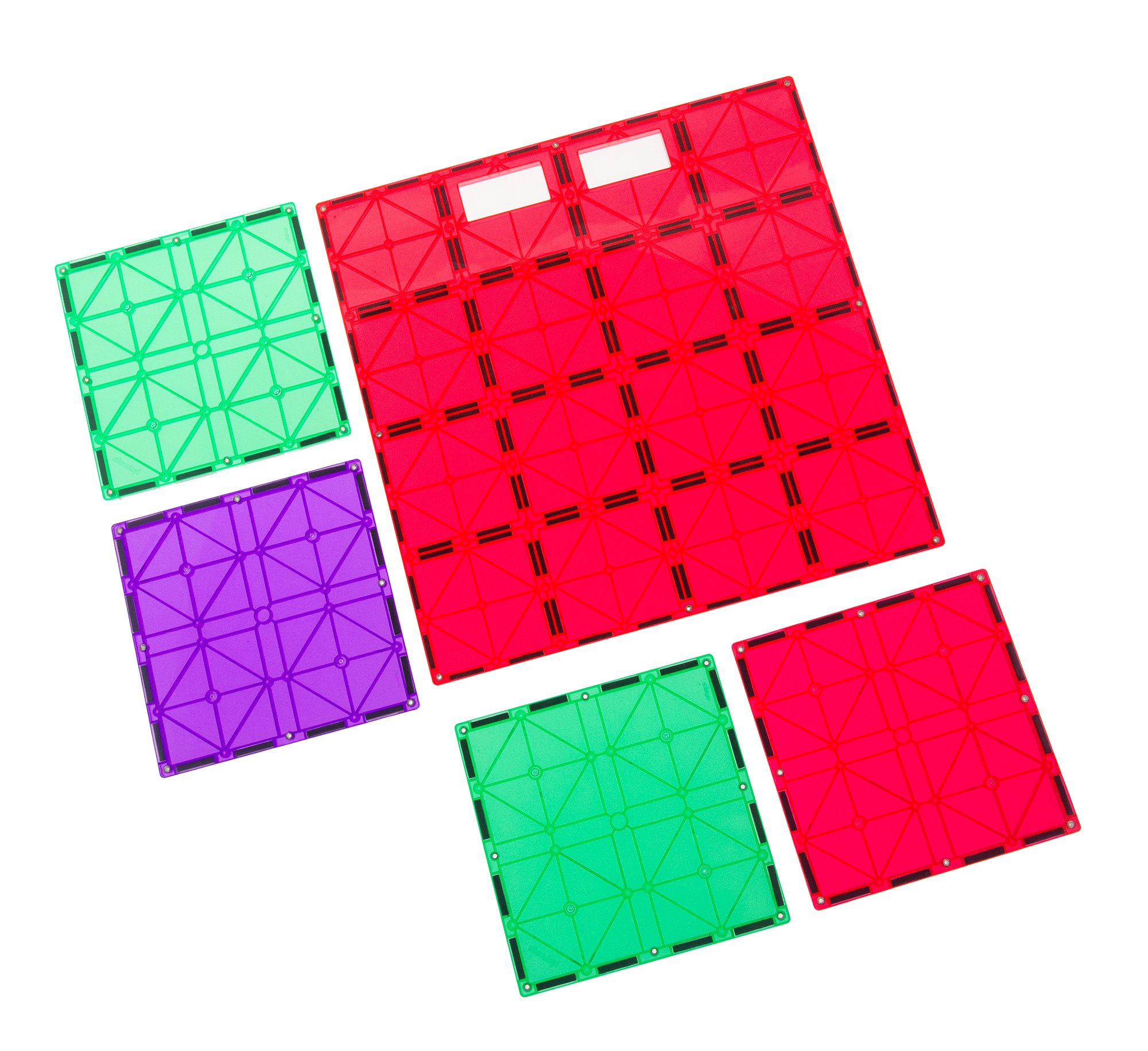 Набір стабілізуючих платформ для конструкторів бренду Playmags. У комплект входить 1 велика платформа розміром 30,5 х 30,5 см і 4 малих - 15,2 х 15,2 см кожна. Платформи є дошки з кольорового напівпрозорого пластика з вбудованими маленькими магнітами. Колір магнітних дощок може відрізнятися, в залежності від комплектації. Основи для будівництва - великі помічники дітям, оскільки мають стабілізуючий ефект для конструкцій і дозволяють дітям розвивати уяву, створюючи незвичайні будівлі.
