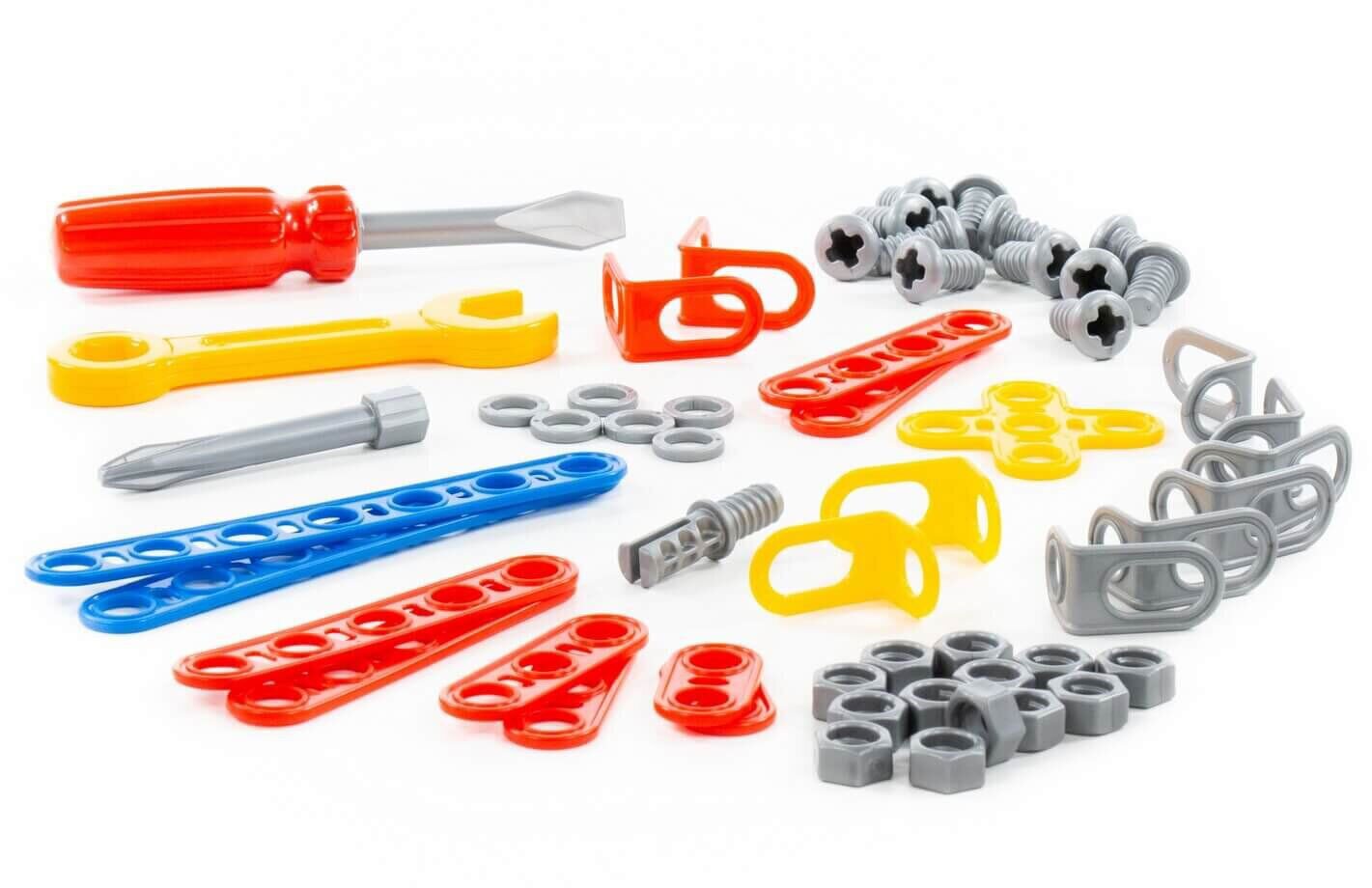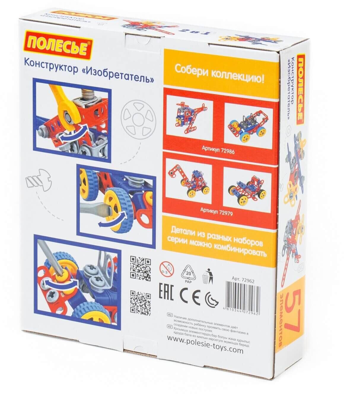 Конструктор від фабрики Полісся вирізняється особливим функціоналом. Елементи зроблені у формі планок, пази яких з'єднуються за допомогою болтів і гайок. У комплект конструктора входять докладні інструкції, дотримуючись яких, можна зібрати моделі, представлені на пакованні іграшки. Водночас дитина розвиватиме посидючість і увагу.