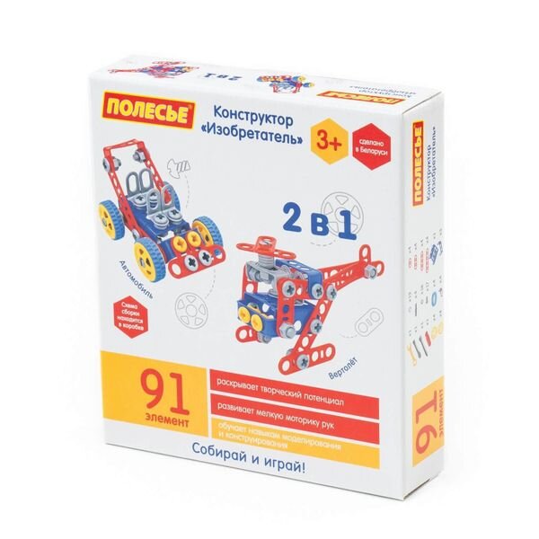 Конструктор Винахідник від фабрики Полісся відрізняється особливим функціоналом. Елементи виконані у вигляді планок, пази яких з'єднуються за допомогою болтів і гайок. В комплект конструктора входять докладні інструкції, дотримуючись яких можна зібрати моделі, представлені на упаковці іграшки. При цьому дитина буде розвивати посидючість і увагу.