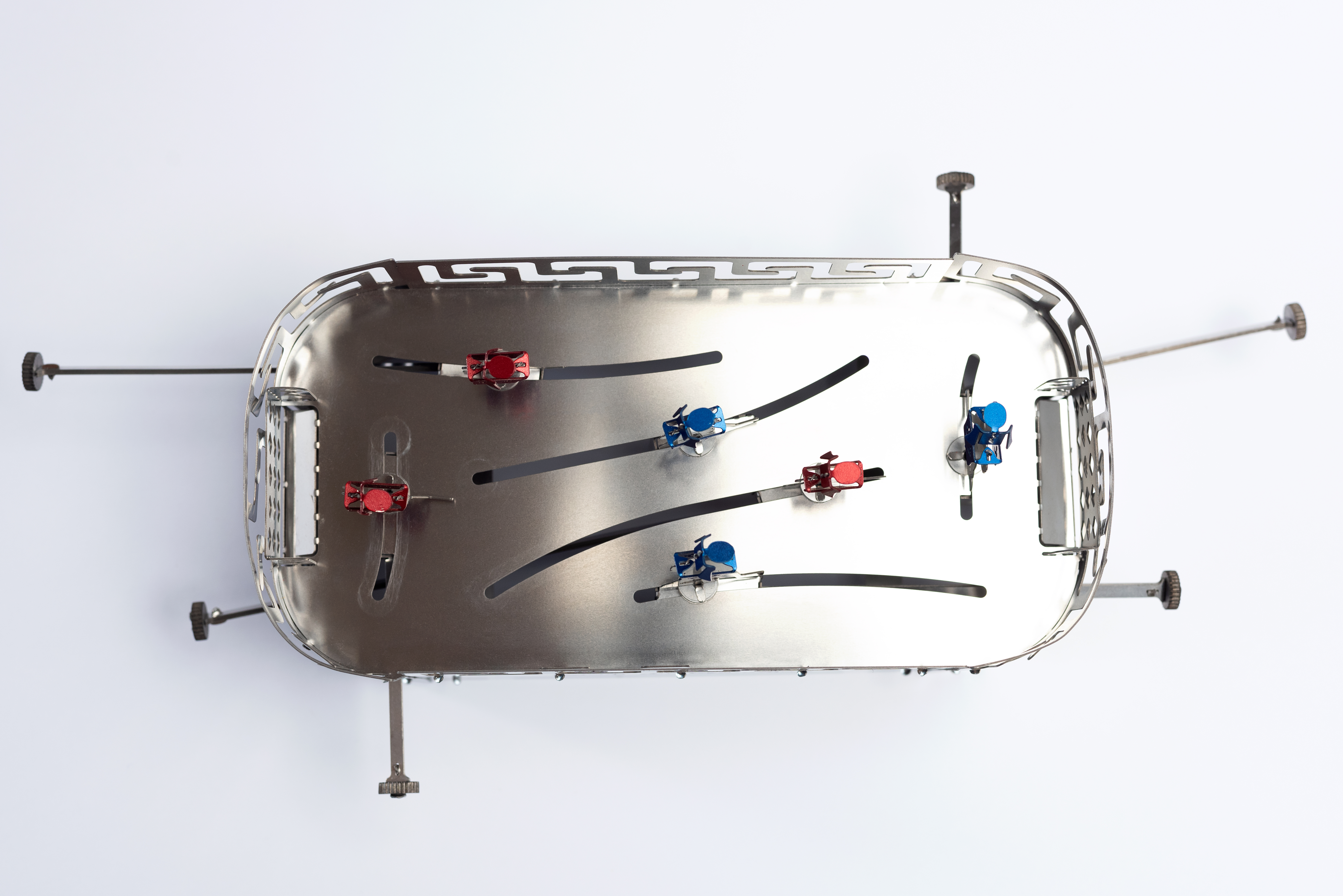 Уявіть, що ви збираєтеся кинути рукавицю ногам свого ворога, коли ваше серце б’ється як божевільне під сталевою бронею. Твої очі блимають під шоломом, і ти стискаєш спис у руці. Сьогодні, щоб відчути дух Середньовіччя, не потрібно битися із зубами та нігтями: ви можете просто пограти в хокей із середньовічними лицарями на грецькому полі! Так, саме так ми любимо еклектику. Ви можете грати в середньовічний хокей зі своїм благородним суперником, не ризикуючи буквально втратити голову. Однак ця гра може принести вам і розваги, і хвилювання. Будьте готові бути залежними від цієї гри. Один хід, і ви не можете зупинитися! У грі 6 гравців, які можна переміщати, повертаючи важелі з боків поля. Ви готові забити якісь старомодні середньовічні цілі?