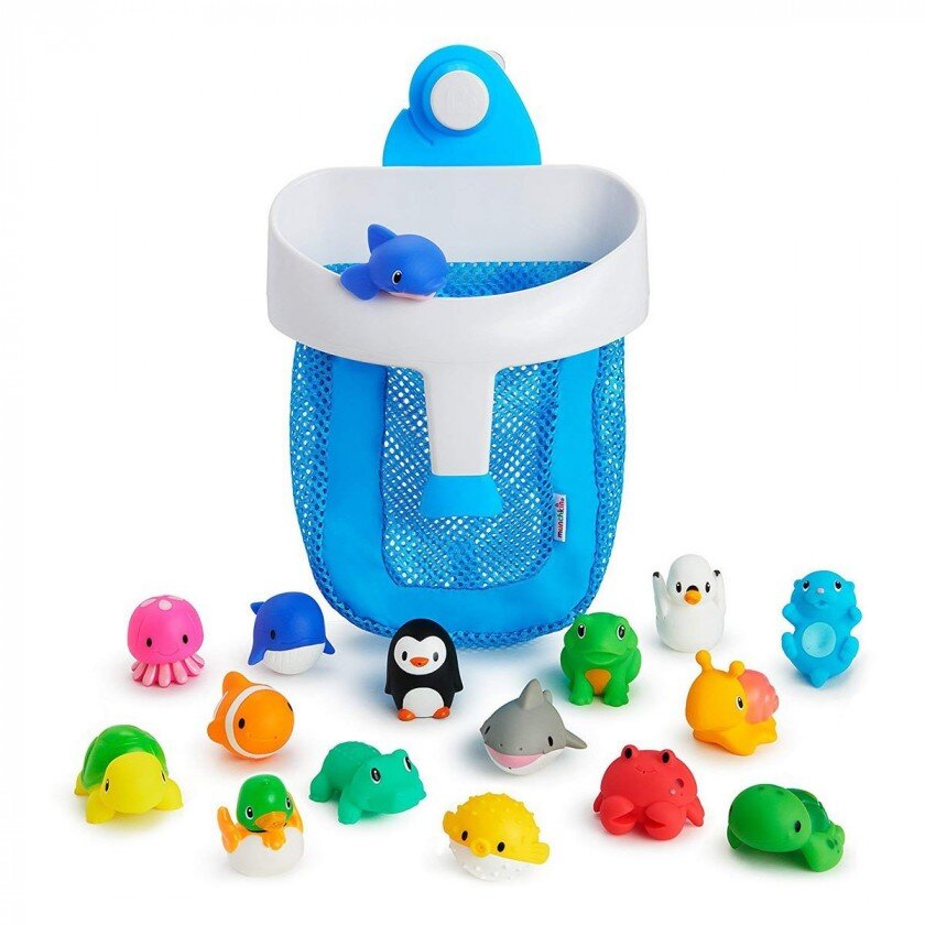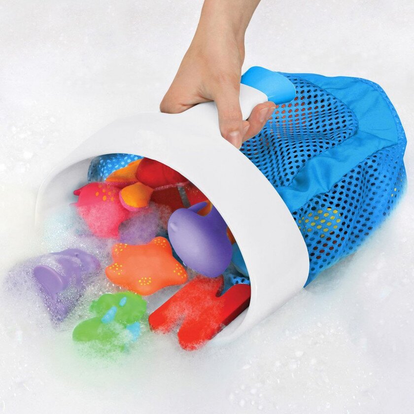 Контейнер для іграшок Munchkin Super Scoop забезпечить швидкий і простий спосіб збору іграшок для купання: просто зачерпніть їх з ванни. Через отвори вода швидко витече з виробу.