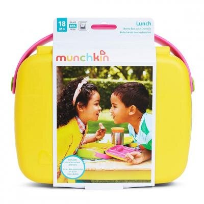 Контейнер для їжі Munchkin Bento Lunch Box йде в комплекті зі столовими приладами з нержавіючої сталі. Барвистий контейнер Munchkin - відмінне рішення для шкільних обідів або перекусів під час прогулянок і подорожей.