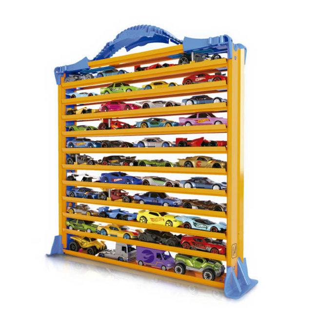 Контейнер Hot Wheels Ігровий гараж з доріжками подарує справжню захопливу гру завдяки 4 паралельним доріжкам та допоможе зберегти свою колекцію, адже в ньому достатньо місця для розміщення до 20 машинок Hot wheels.