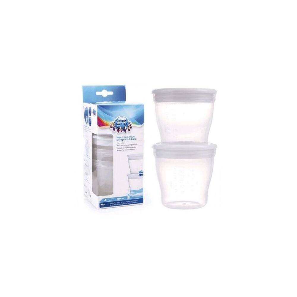 Контейнери Canpol babies призначені для зберігання молока/їжі в холодильнику або морозильній камері. Для контролю рівня рідини кожна баночка оснащена мірною шкалою.