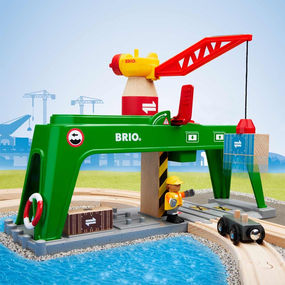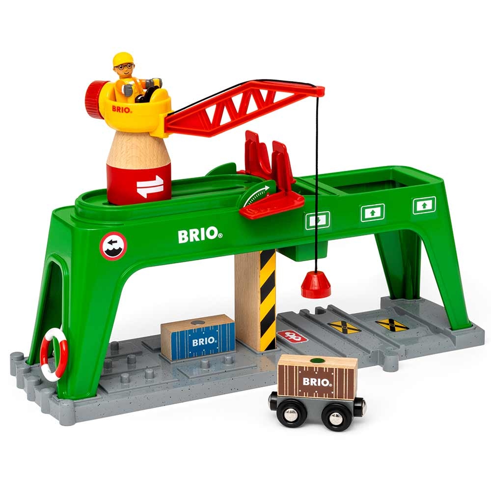 Контейнерний кран BRIO (33996) - сідайте на цей великий зелений залізничний аксесуар і починайте роботу. Відмінний додаток до колекції BRIO та маса веселощів для дитини.