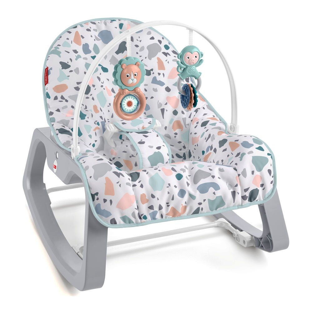 Крісло-гойдалка Fisher-Price Незабутнє хитання заспокоїть малюка. Підійде як для дівчинки, так і для хлопчика. Модель оснащена фіксатором ніжок та заспокійливою вібрацією. Дуга з іграшками зацікавить та розважить дитину. Дві іграшки — лев та мавпенятко — брязкотять і привертають увагу немовляти. Крісло-гойдалка Fisher-Price допоможе заспокоїти дитину та подарує кілька вільних хвилин батькам, які можуть не хвилюватися за своє чадо.