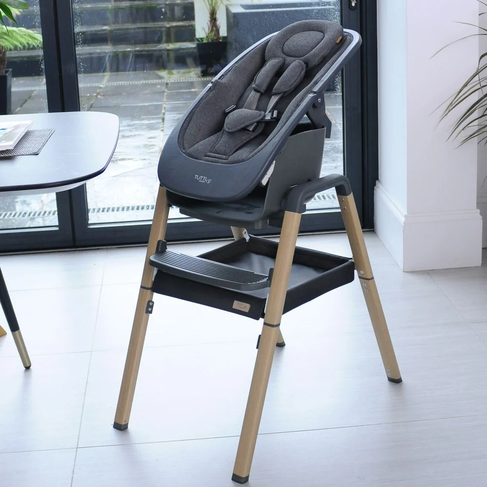 4 модифікації використання разом зі стільчиком Tutti Bambini Nova: шезлонг, високий та низький стільчик для новонародженого, крісло-гойдалка;